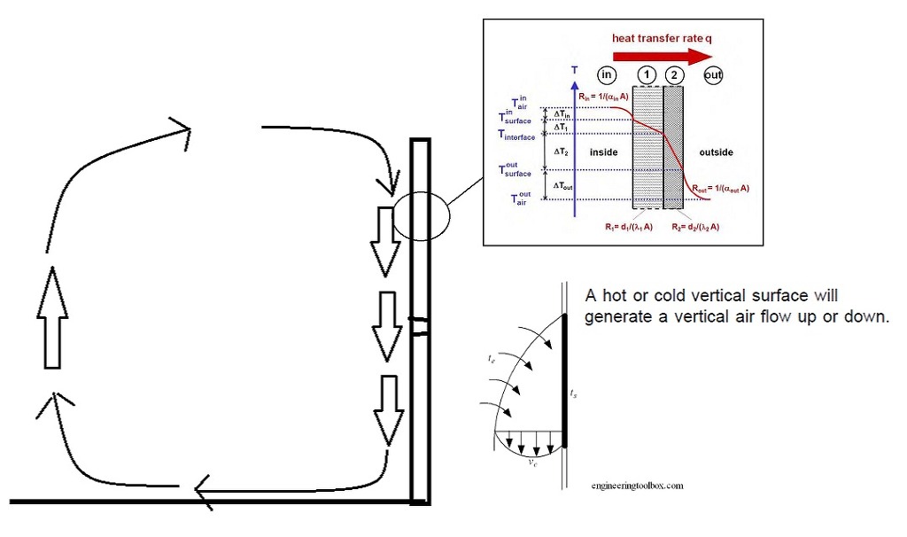 냉기의 순환이 매우 활발하게 이루어지고 있다. 유리표면에서 차가워진 공기가 아래로 떨어지고 고 빈자리에 집안의 따뜻한 공기가
