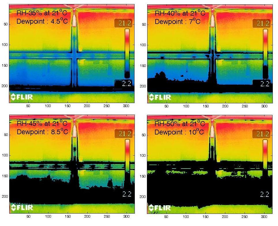 40% 상대 습도만 되어도 하부 유리창에 결로가 반이상 생긴다.