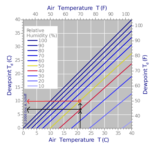 google 검색후 Wikipedia에 있는 약식 노점 온도 계산표 사용