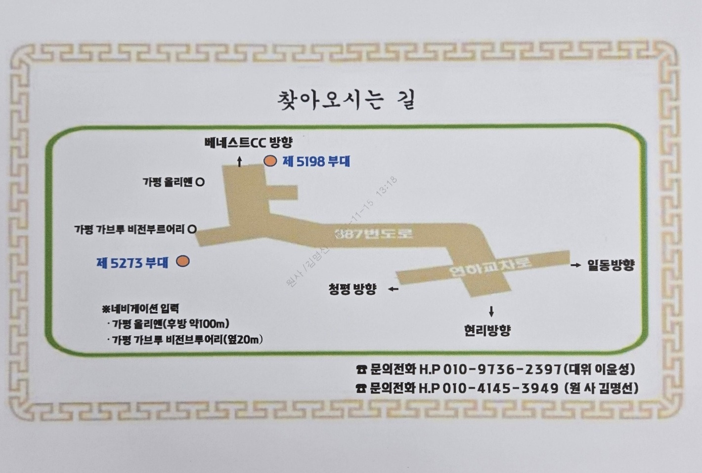 김교춘(가족1), 백승준,김동준,박병옥,황건상,조희철.김선주,김광수,홍학표(가족1),박용근,이재호(가족1) 회원11명(가족3) 합14명 부대에 통보합니다. -