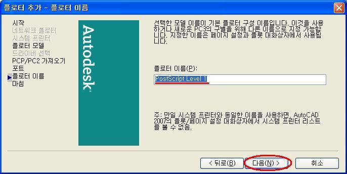 7. 플로터 이름을 정해주거나, 자동으로 붙여진 이름에서 [다음]을 선택