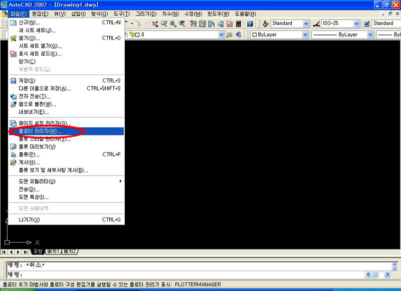 1. 메뉴 [파일(File)]에서 [플로터 관리자(Plotter Manager)]로 갑니다.