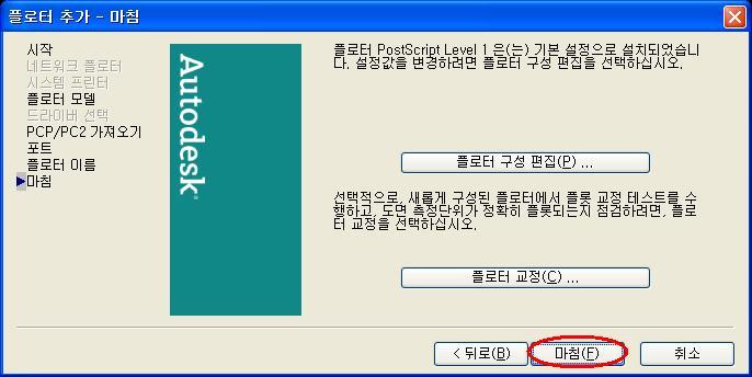 8. [마침]하면 가상플롯으로 [PostScript Level1]이 생성됩니다.