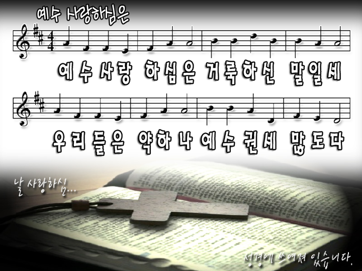 [스크랩] 예수 사랑하심은 거룩하신 말일세 파워포인트 PPT 악보 작성자suleja|작성시간09.12.12|조회수4,098 목록 댓글 0 글자크기 작게가 글자크기 크게가 예수사랑하심은.ppt 예수사랑하심은거룩하신말일세 파워포인트 PPT 악보 첨부파일첨부된 파일이 2개 있습니다. png 파일 예수사랑하심은.png 다운로드 ppt 파일 예수사랑하심은.ppt 다운로드 다음검색 스크랩 원문 : 오직 주만 현재 게시글 추가 기능 열기 북마크 공유하기 신고 센터로 신고 댓글 댓글 0 댓글쓰기 답글쓰기 댓글 리스트
