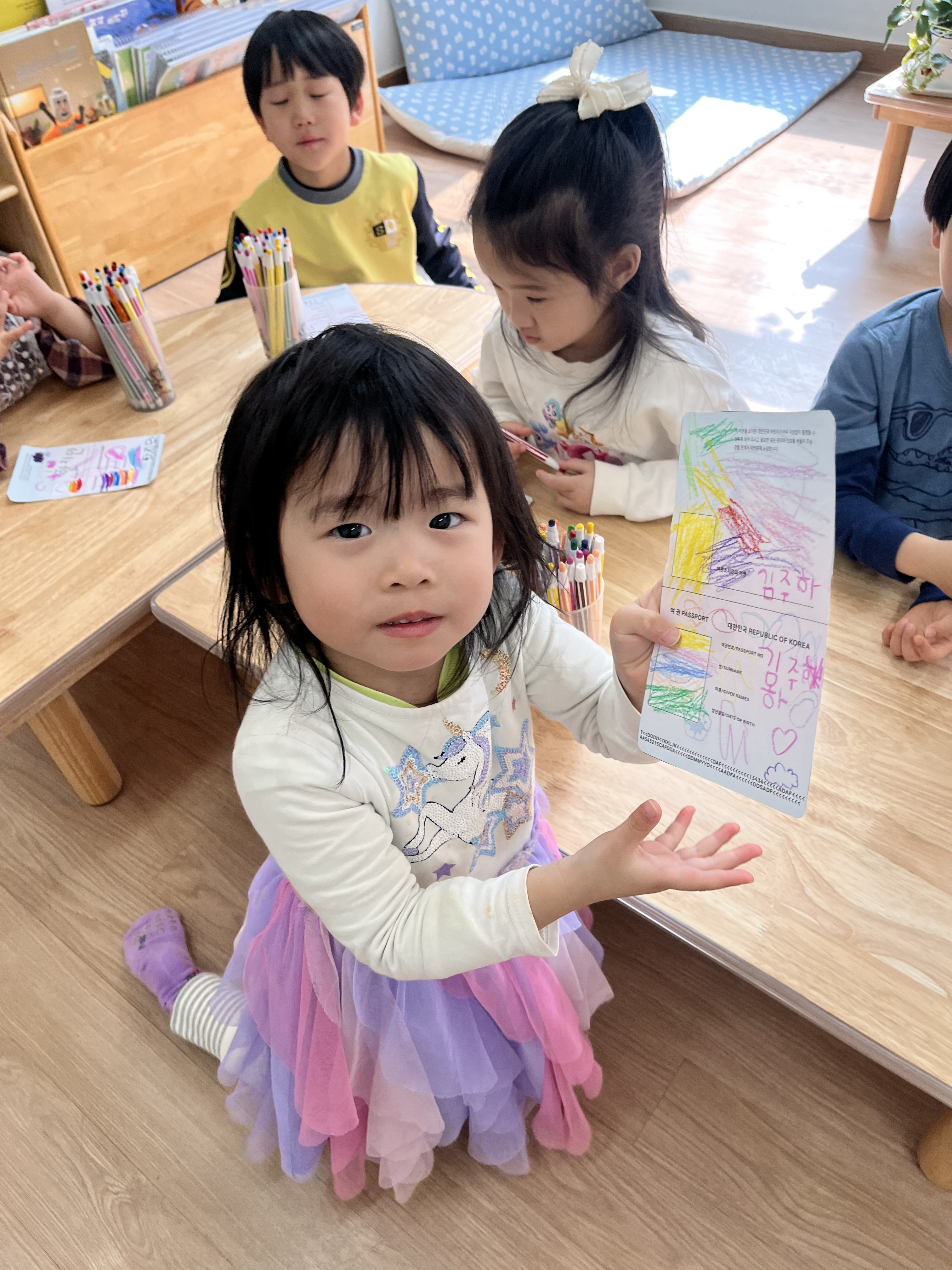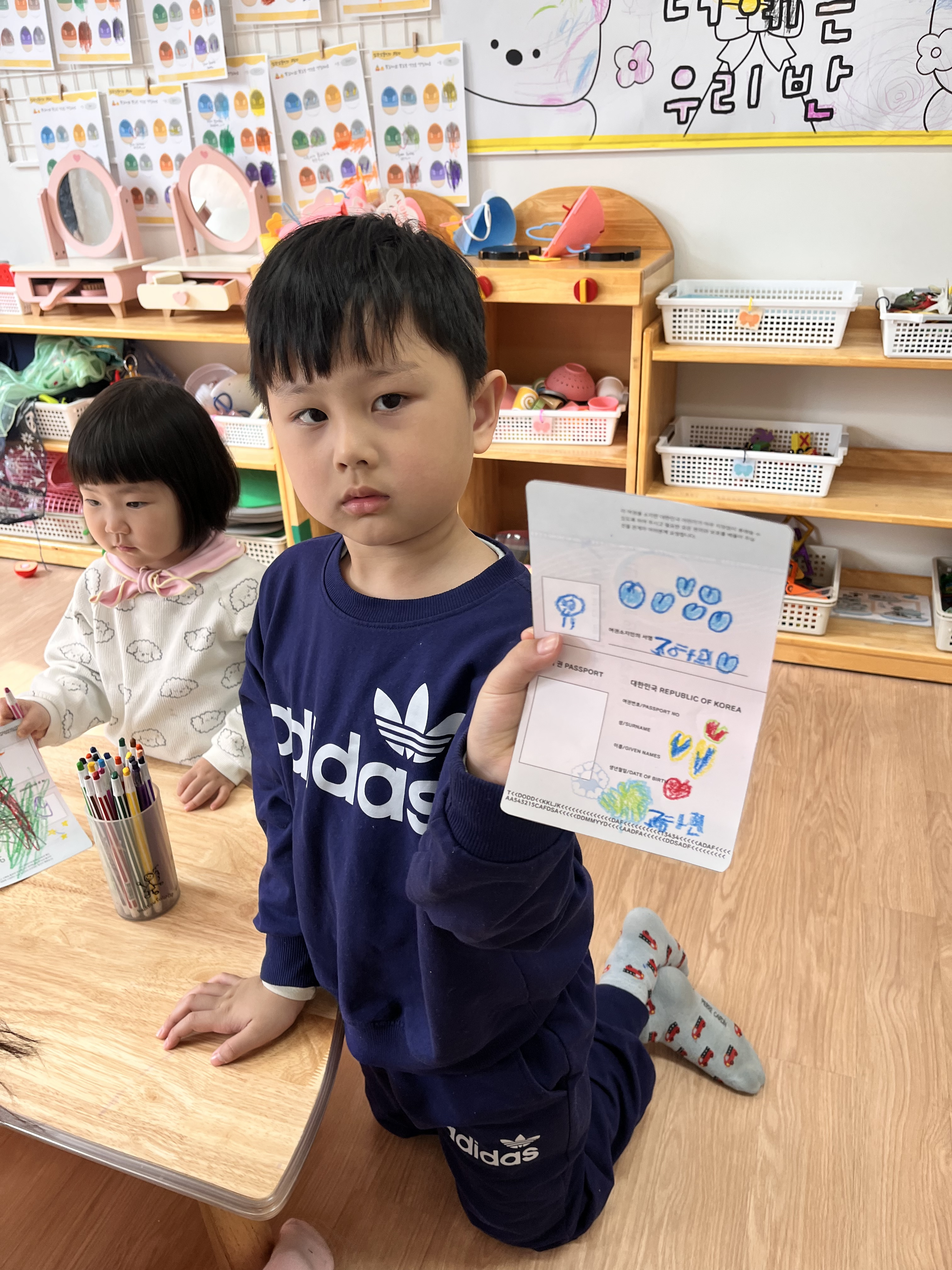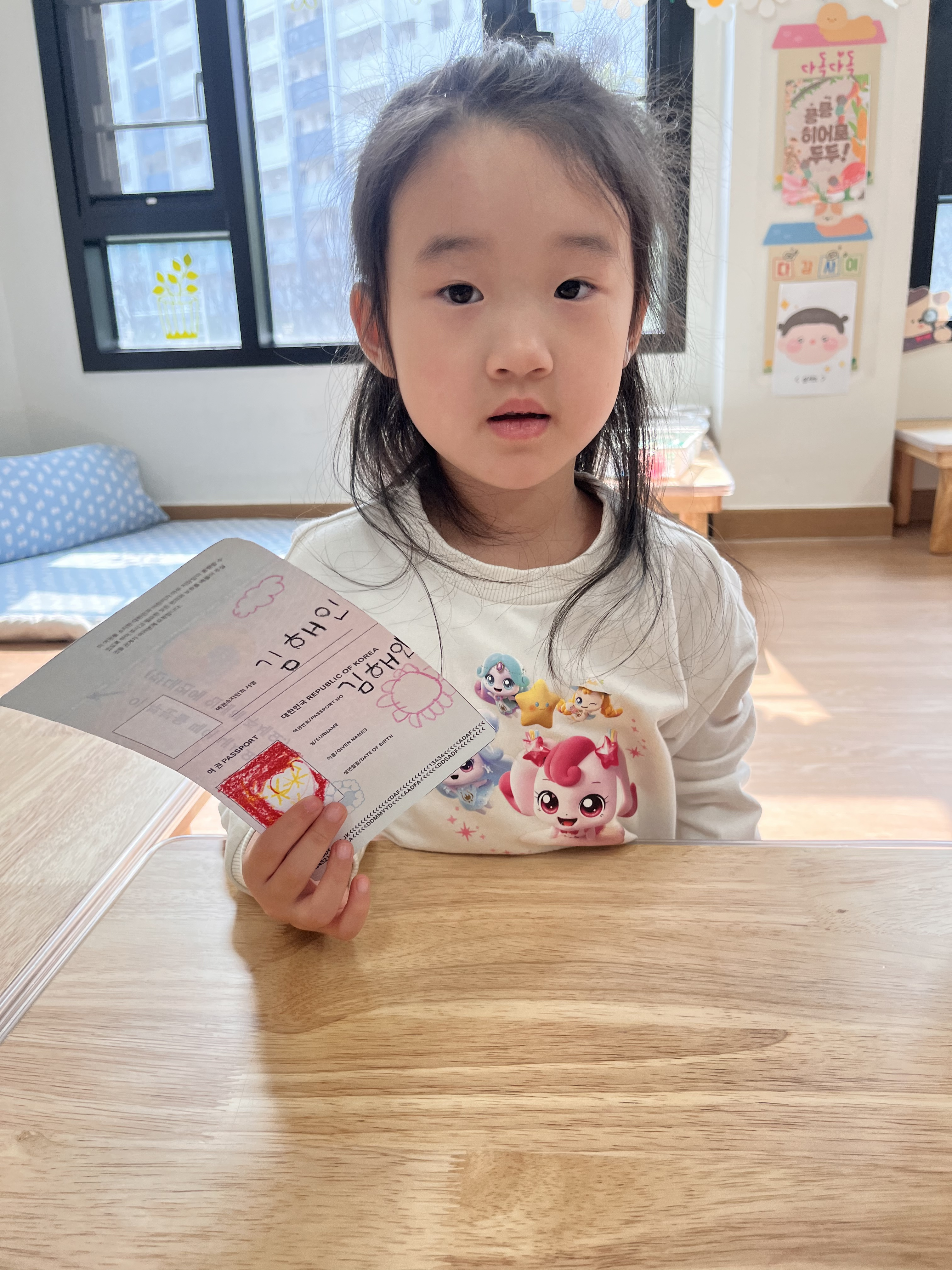 1년동안 띠앗머리시간에 만날 같은 조 친구들과 인사도 나누며 세계여행을 떠날 여권도 꾸며보는 시간을 가졌어요