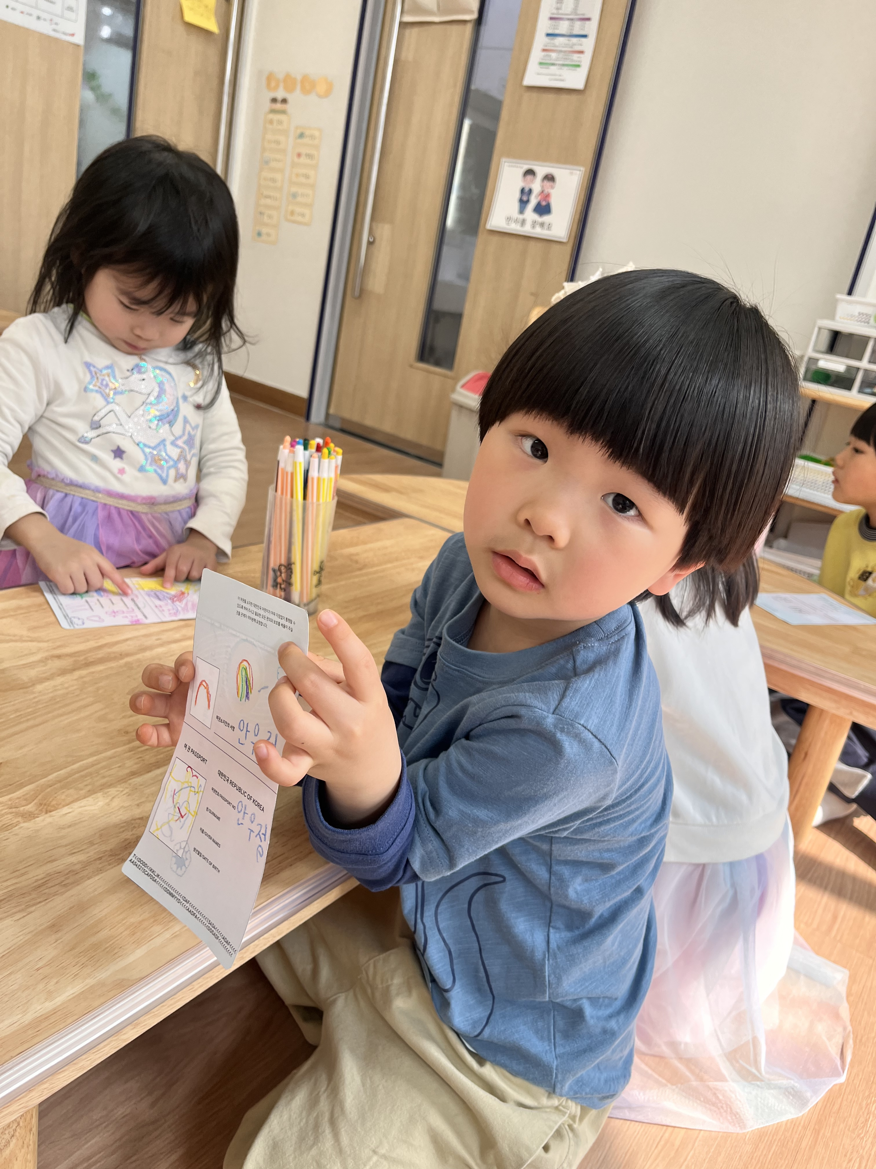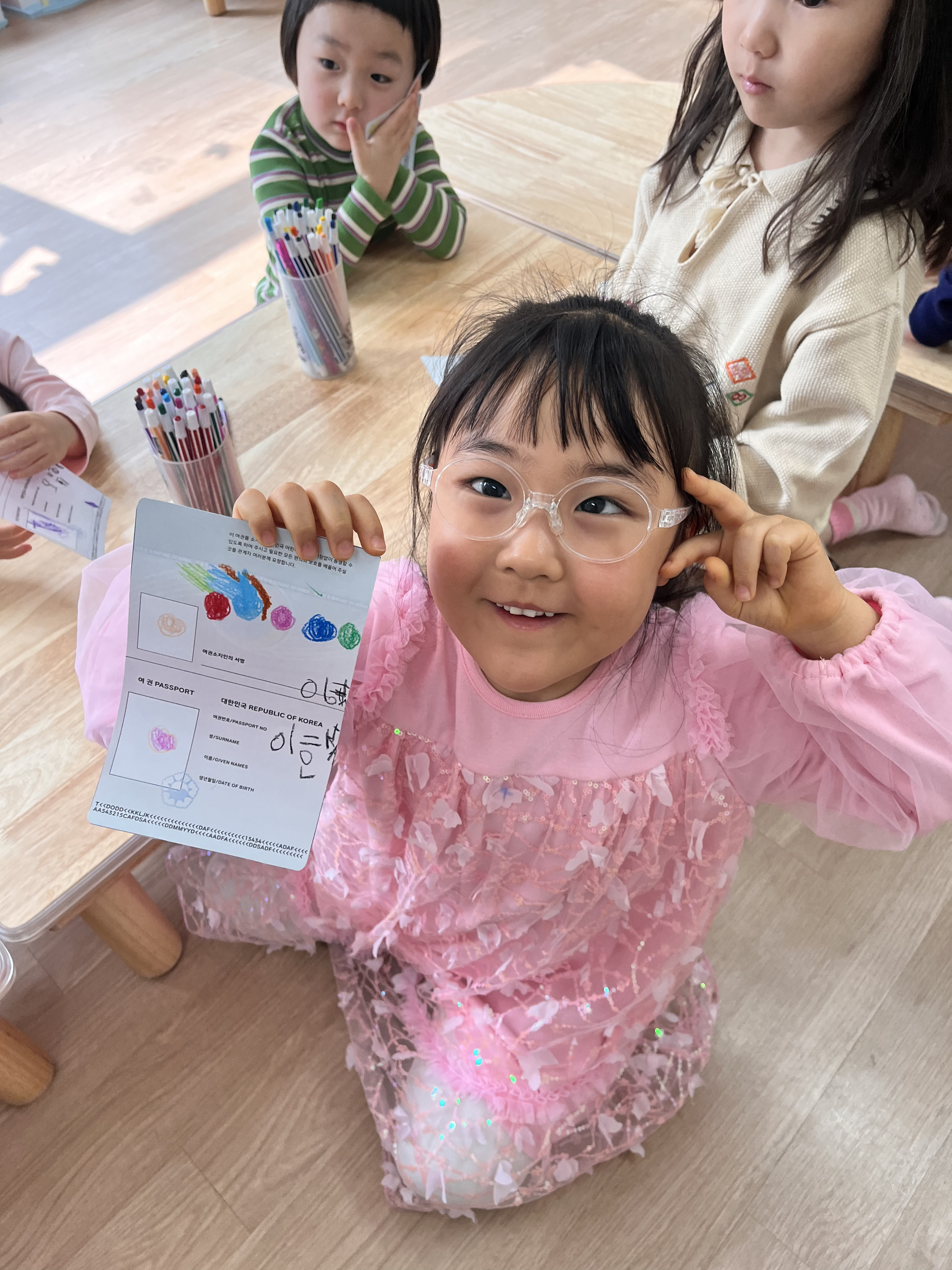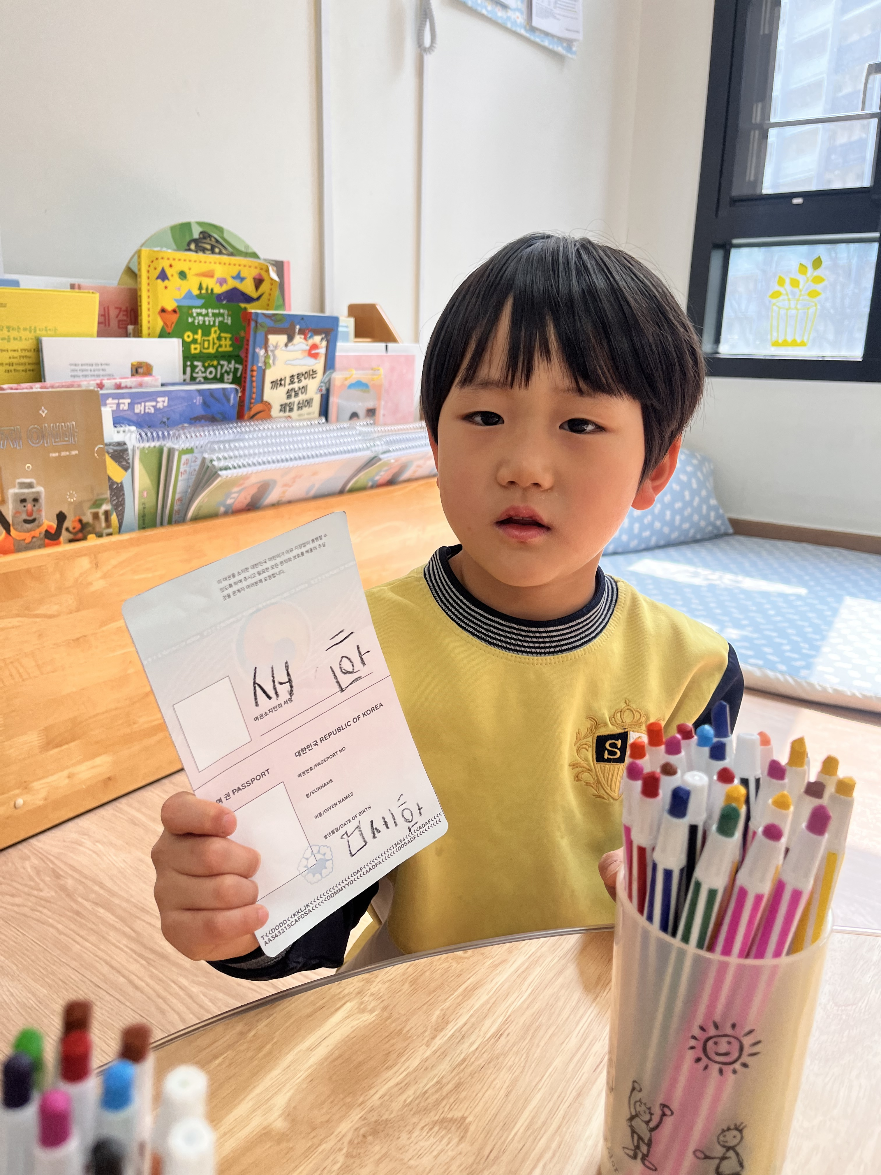 1년동안 띠앗머리시간에 만날 같은 조 친구들과 인사도 나누며 세계여행을 떠날 여권도 꾸며보는 시간을 가졌어요