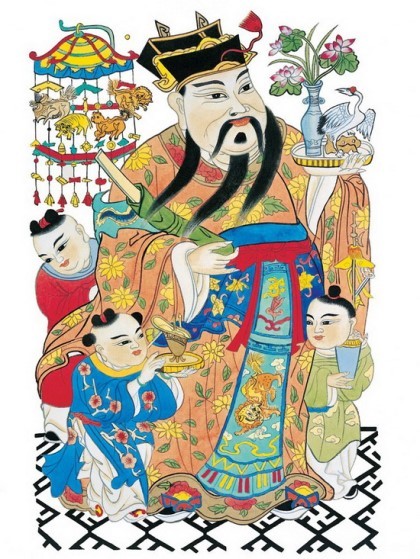 오로五路는 동서남북과 중앙을 가리키며, 오로재신은 모두 길상신으로 연화年畵에 자주 나타난다. 강남일대에서 가장 유행하였으며, 정월 초닷새는 오로재신의 생일이라 한다.