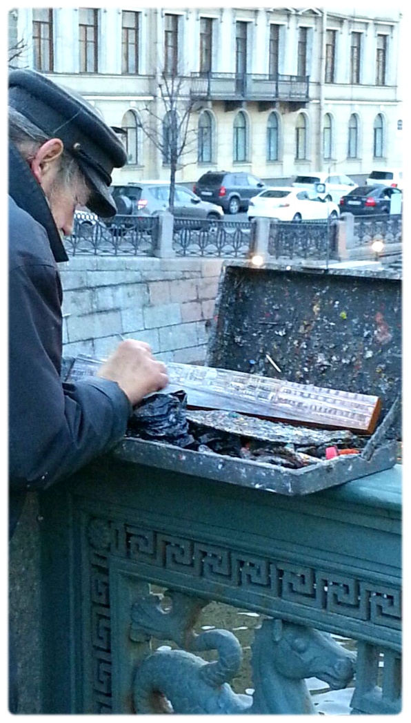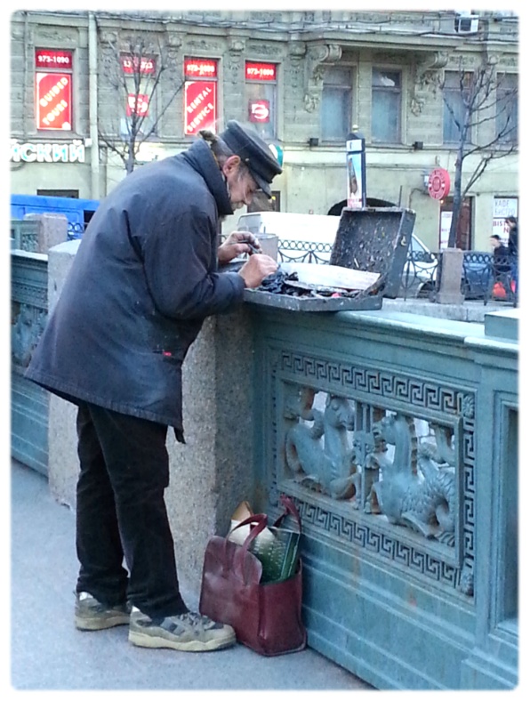 이 할아버지!!! 다시 나타났다! 작년엔 안 오셨는데~ 아니치코프 다리에서 항상 그림을 그리는 할아버지, 여기야 뭐 길거리에서 그림 그리는 화가들이 한 블럭 건너 즐비하지만 이 할아버지는 좀 특별하다