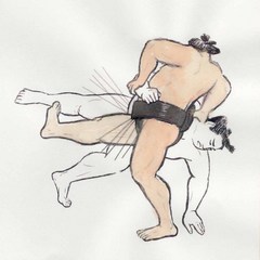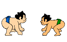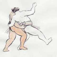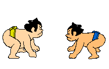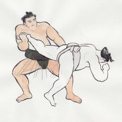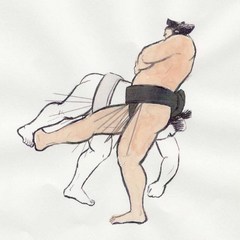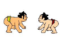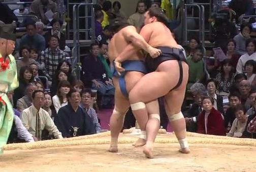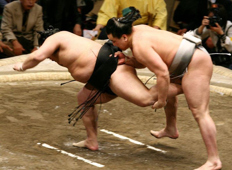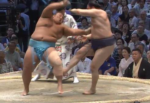 타치아이(立合い) 이후 상대의 다리를 차면 케타구리(けたぐり),
