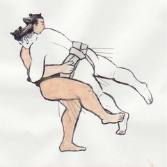 상대의 뒷무릎을 자신의 허벅지에 올려 지렛대의 원리로 쓰러뜨리는 방식도 있다.