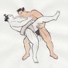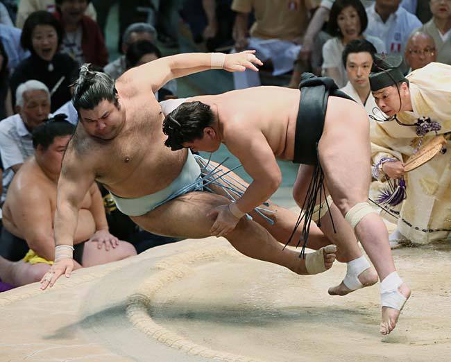 8. 미토코로제메 (三所攻め, みところぜめ)- 발 걸어 밀어치기