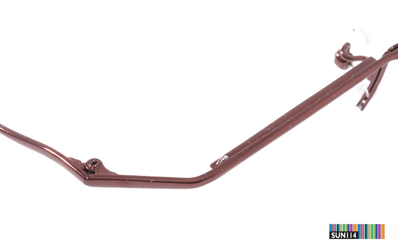 금속 반무테의 전면 상단 프런트 부분과 탬플(템플)의 코팅이 전체적으로 조금씩 벗겨진 상태입니다.