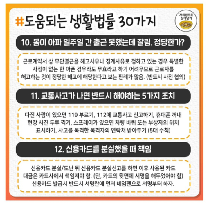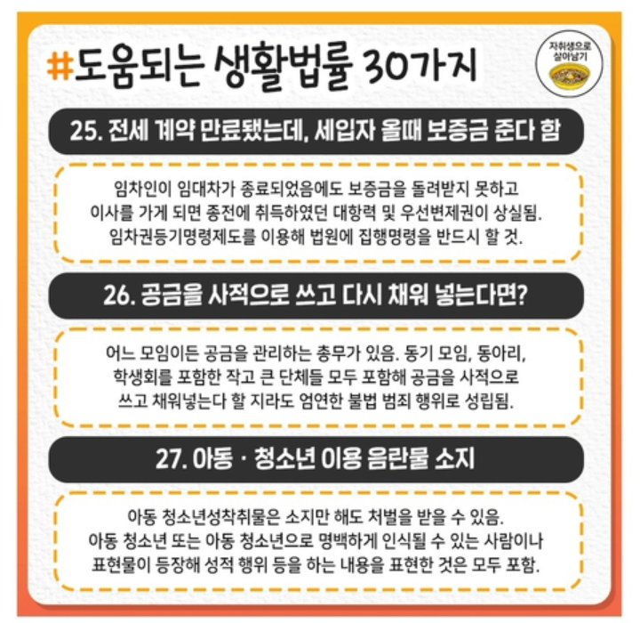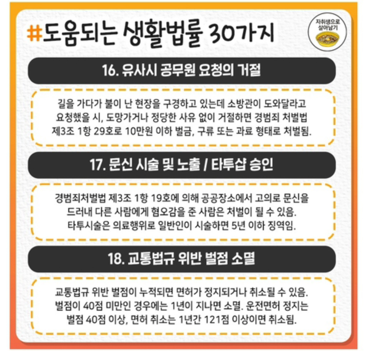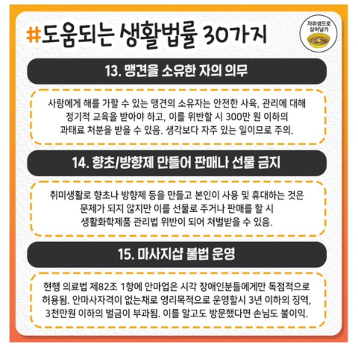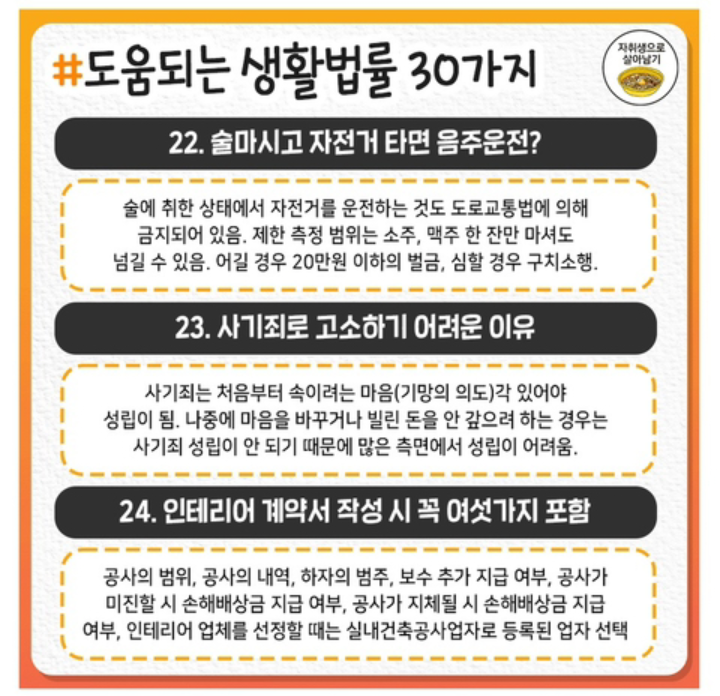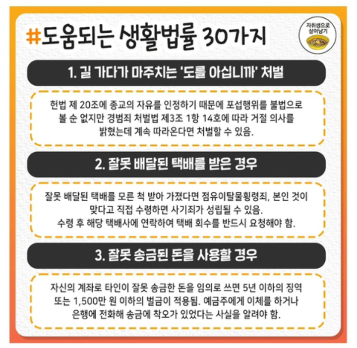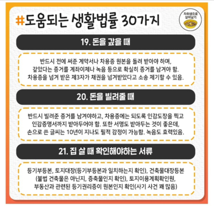 도움되는 생활법률 30가지 작성자처음과같이|작성시간21.06.15|조회수20 목록 댓글 0 글자크기 작게가 글자크기 크게가 .도움되는 생활법률 30가지 다음검색 현재 게시글 추가 기능 열기 북마크 공유하기 신고 센터로 신고 댓글 댓글 0 댓글쓰기 답글쓰기 댓글 리스트