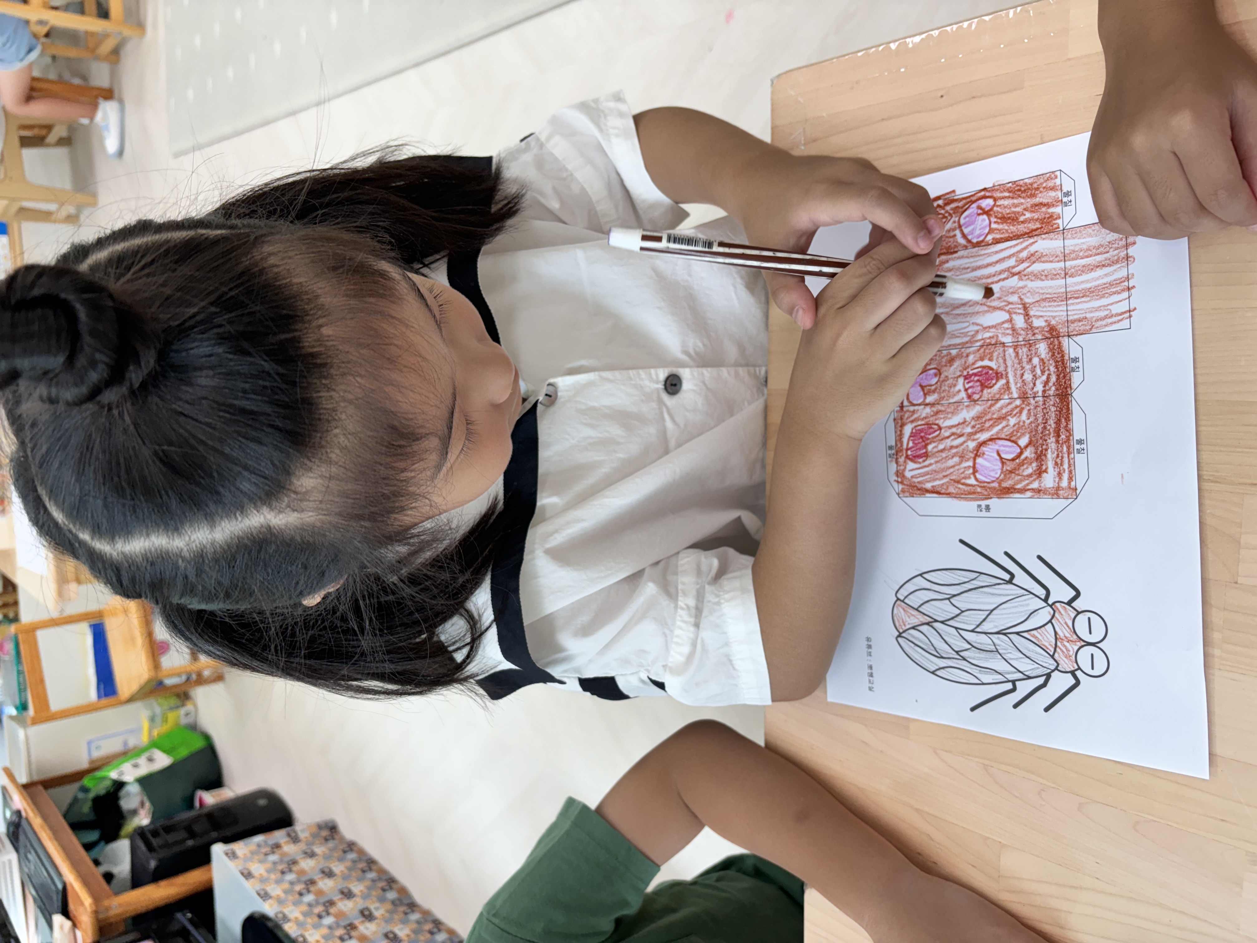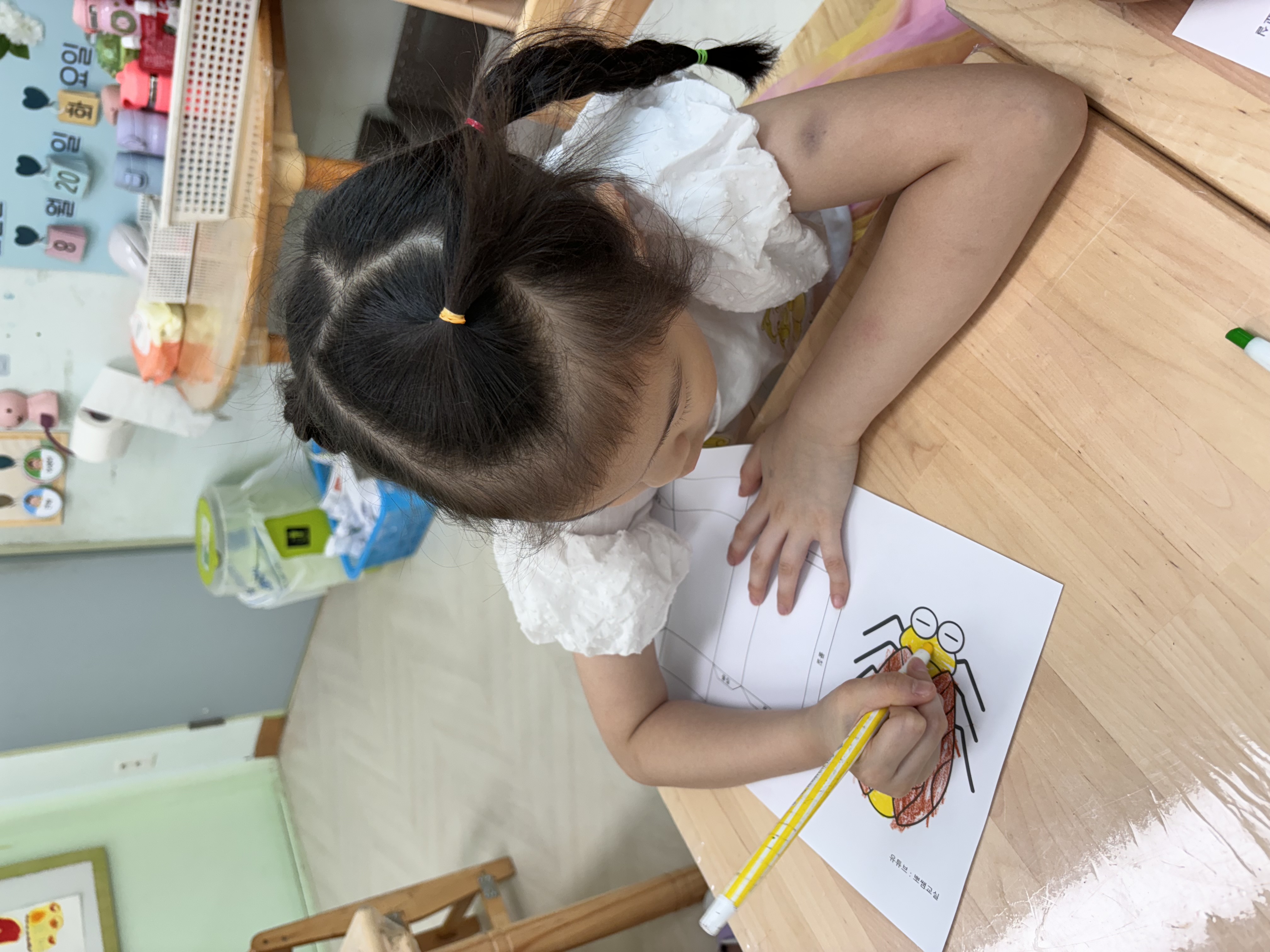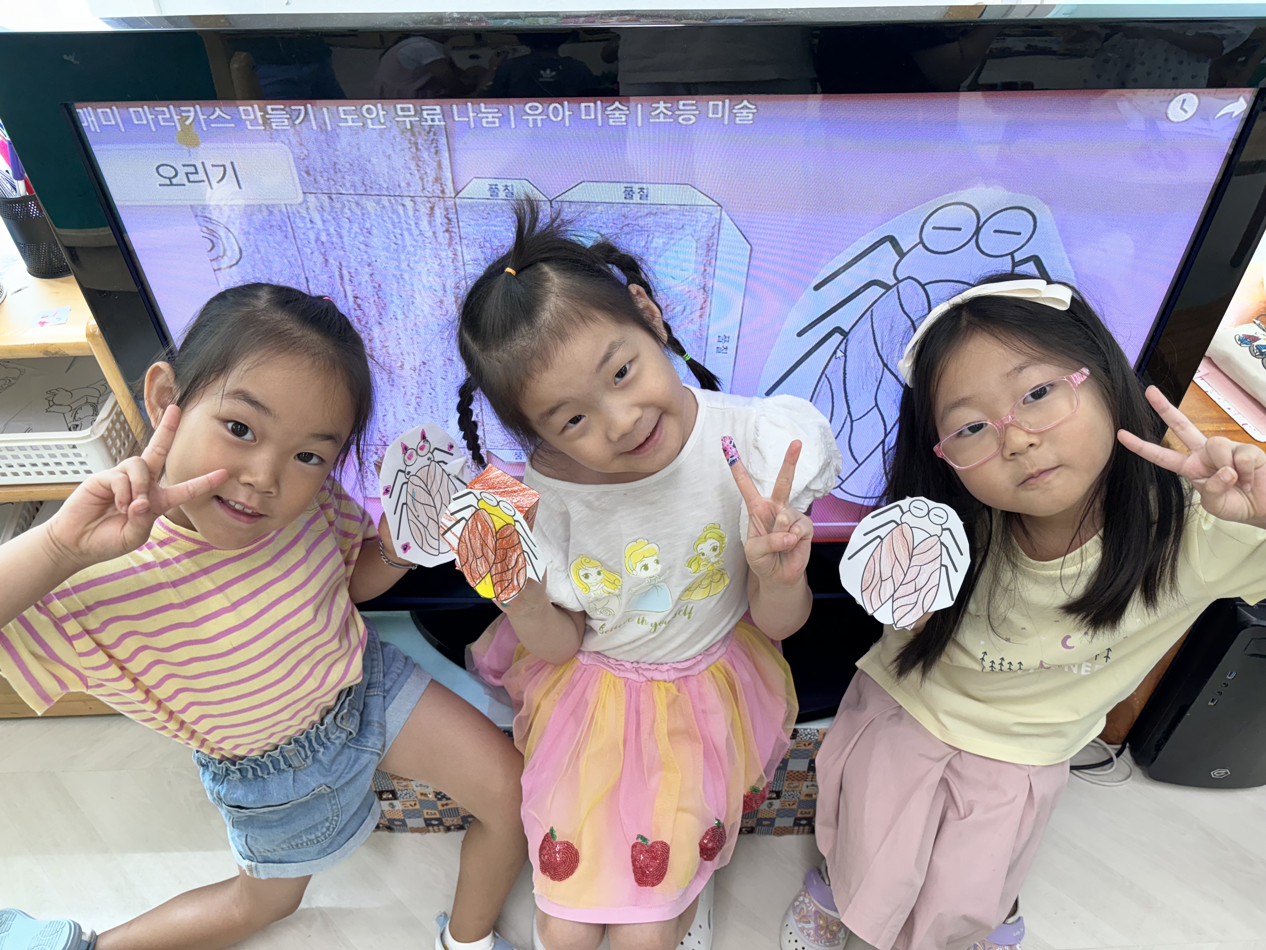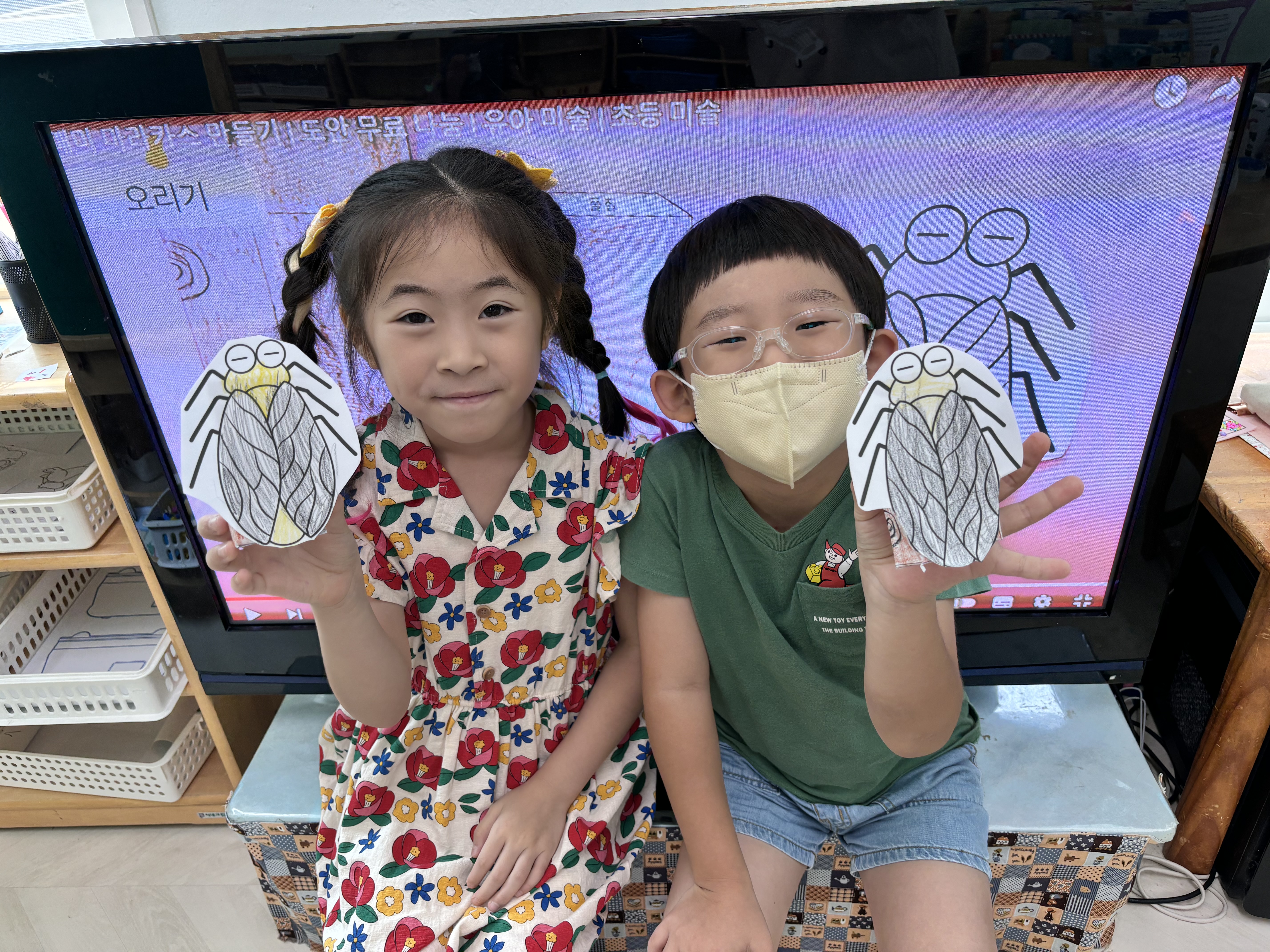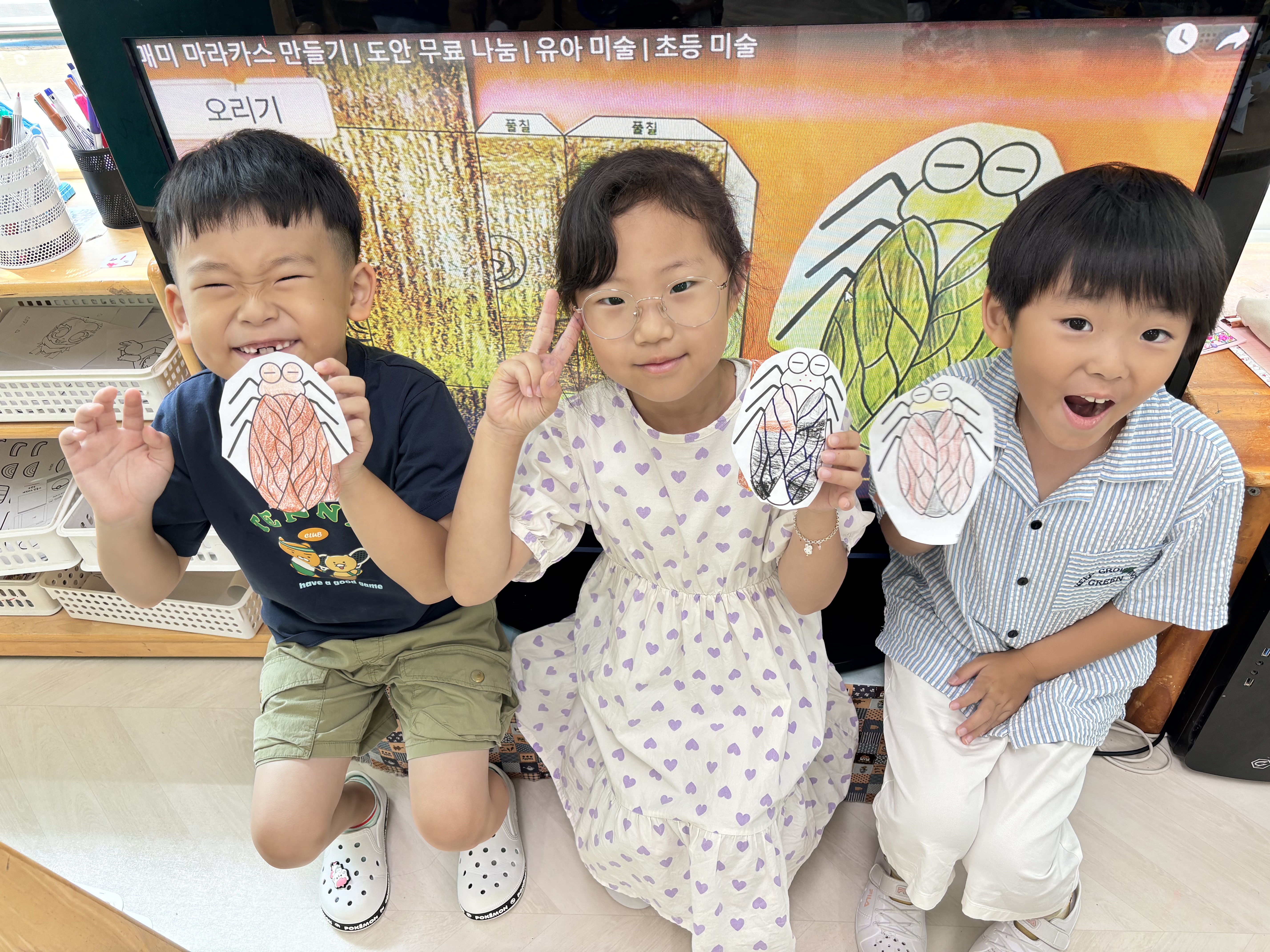 친구들이 매미 마라카스를 만드는 미술 활동을