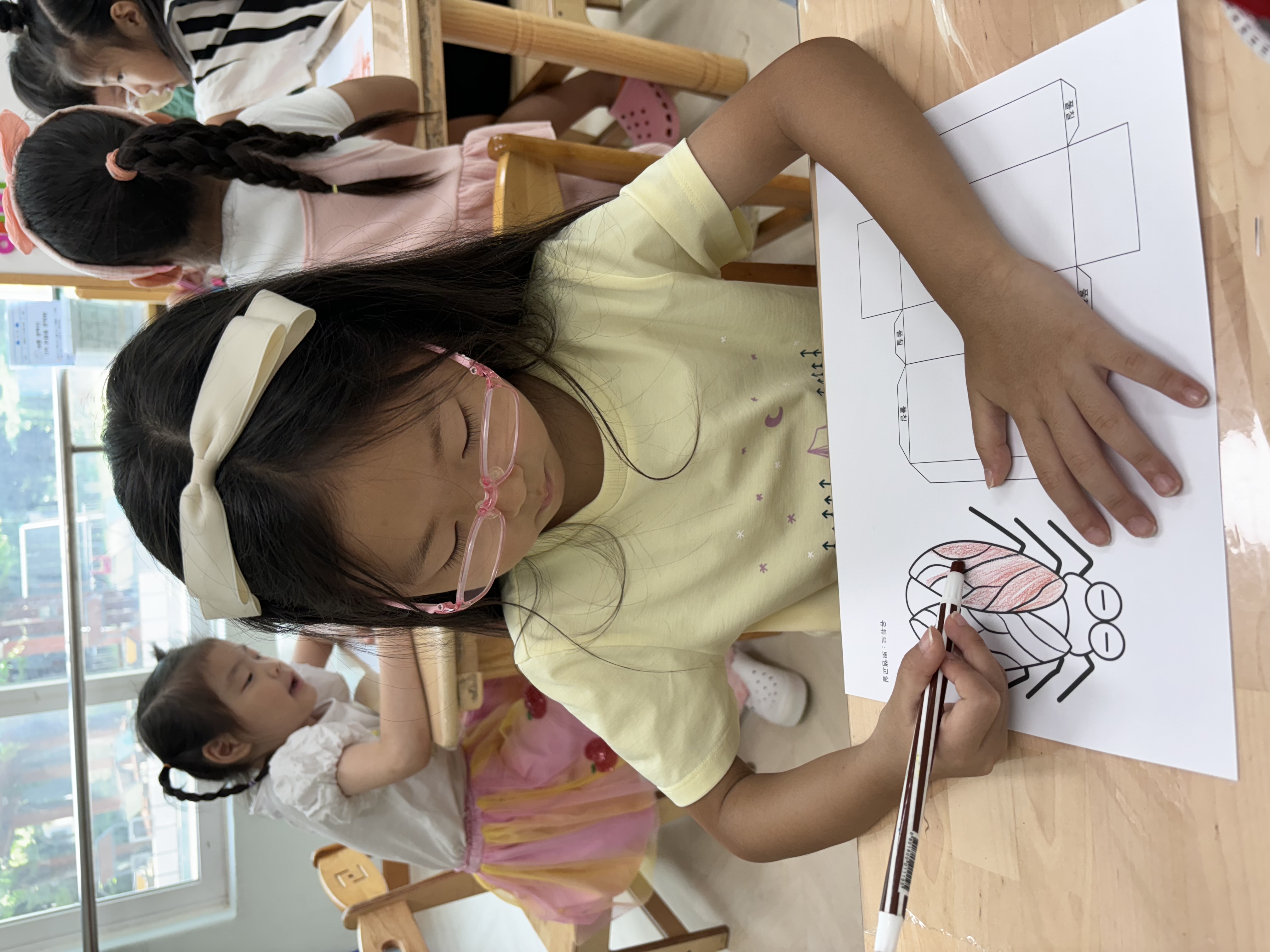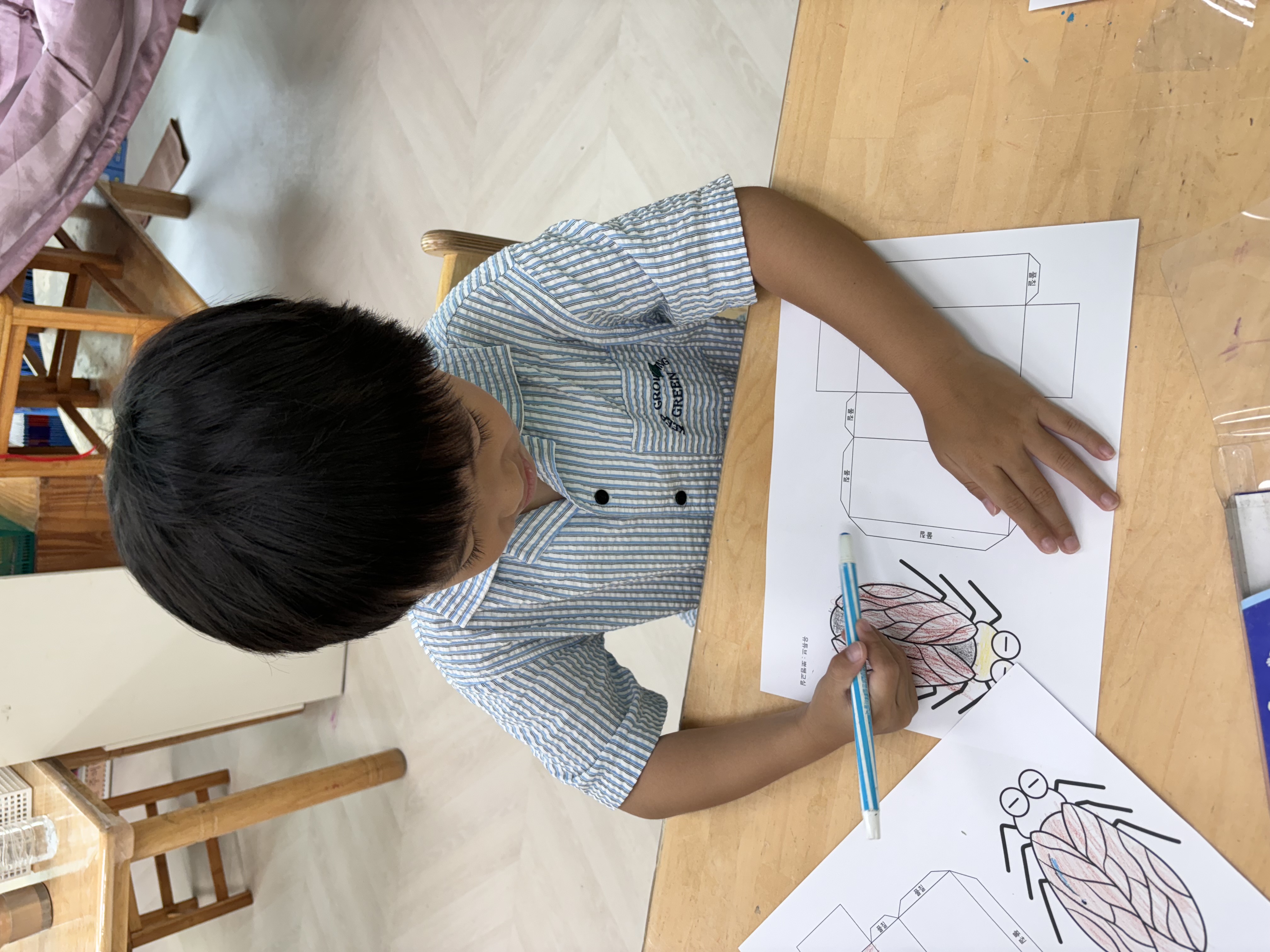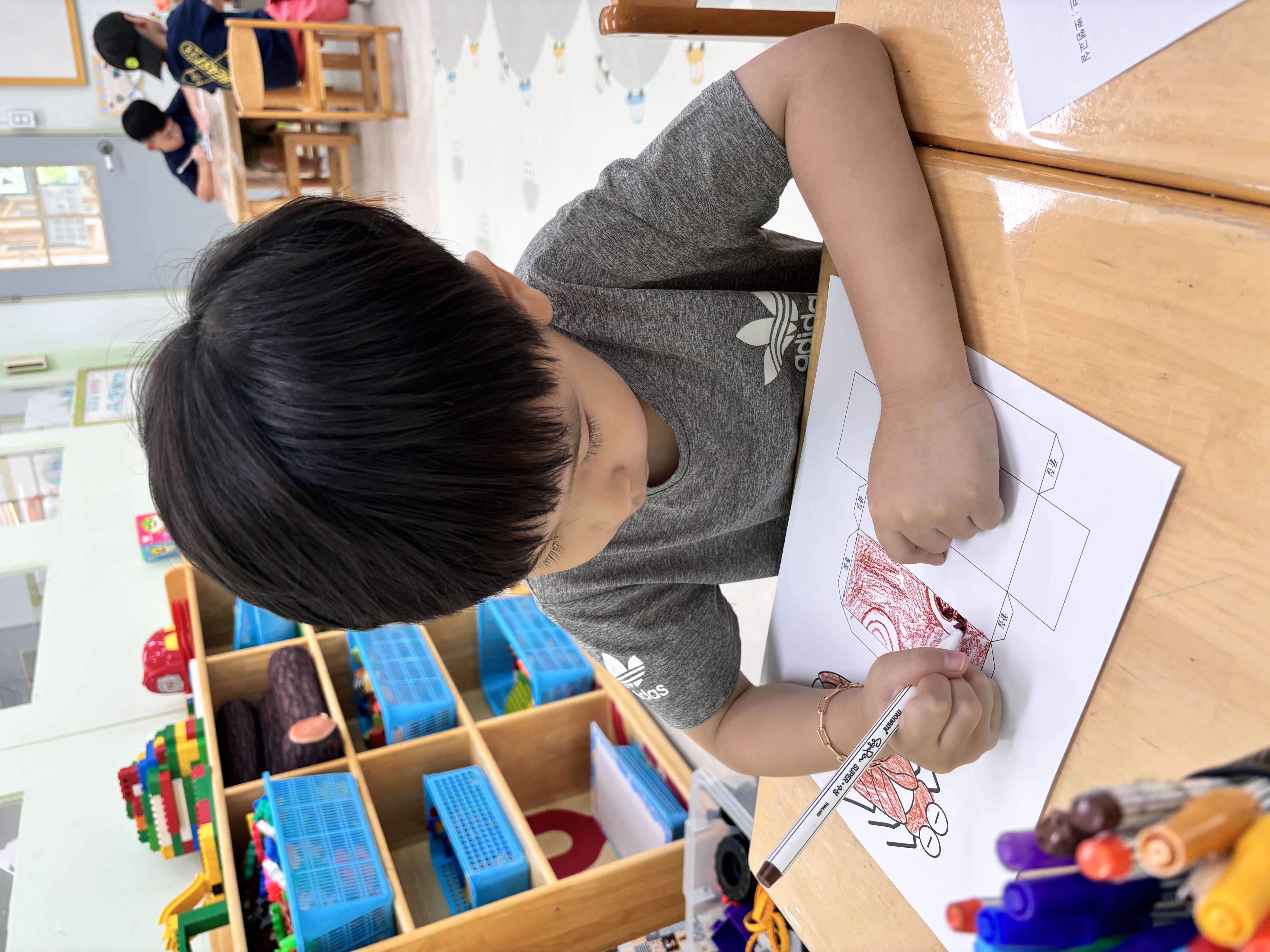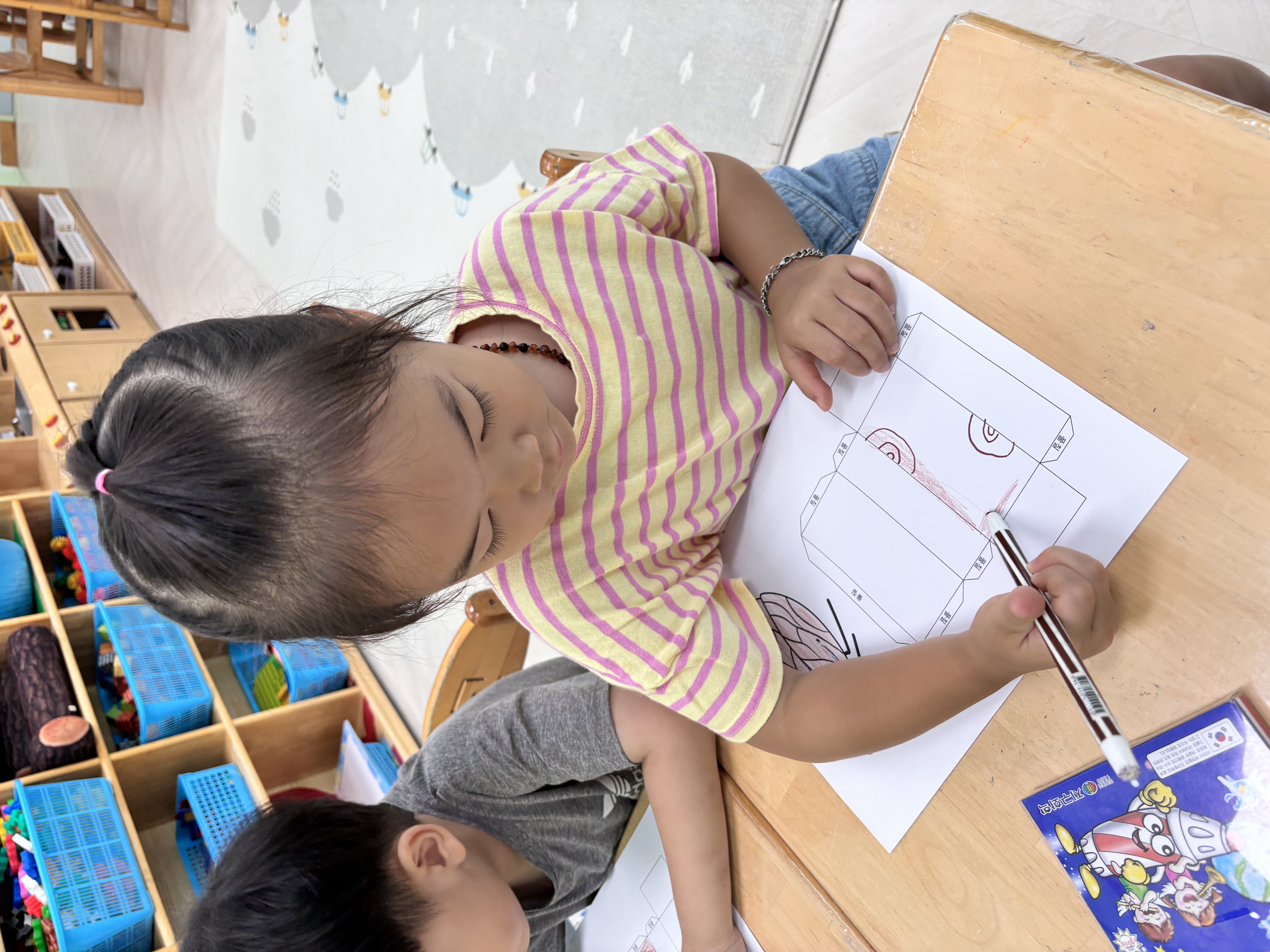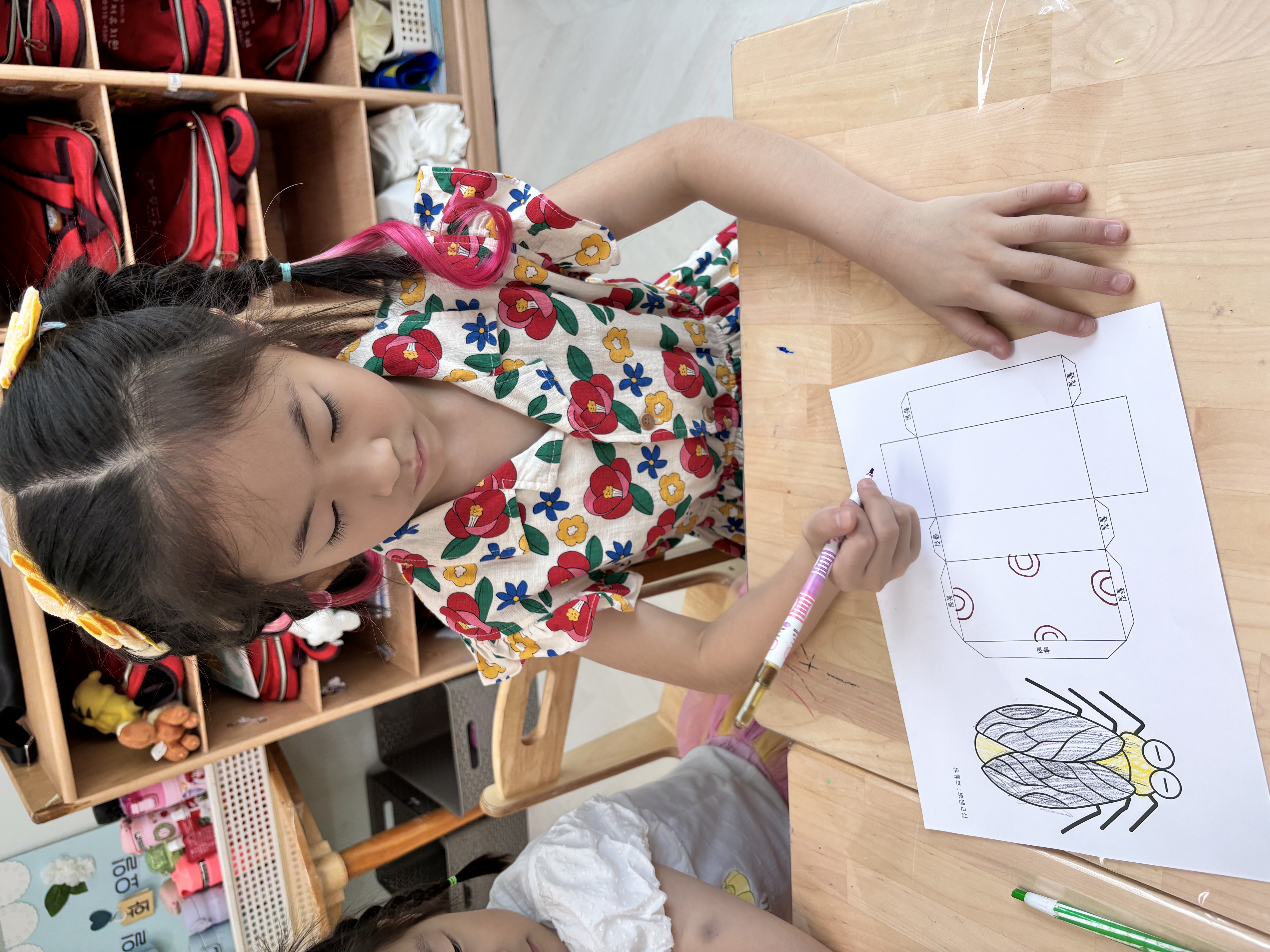 친구들이 매미 마라카스를 만드는 미술 활동을