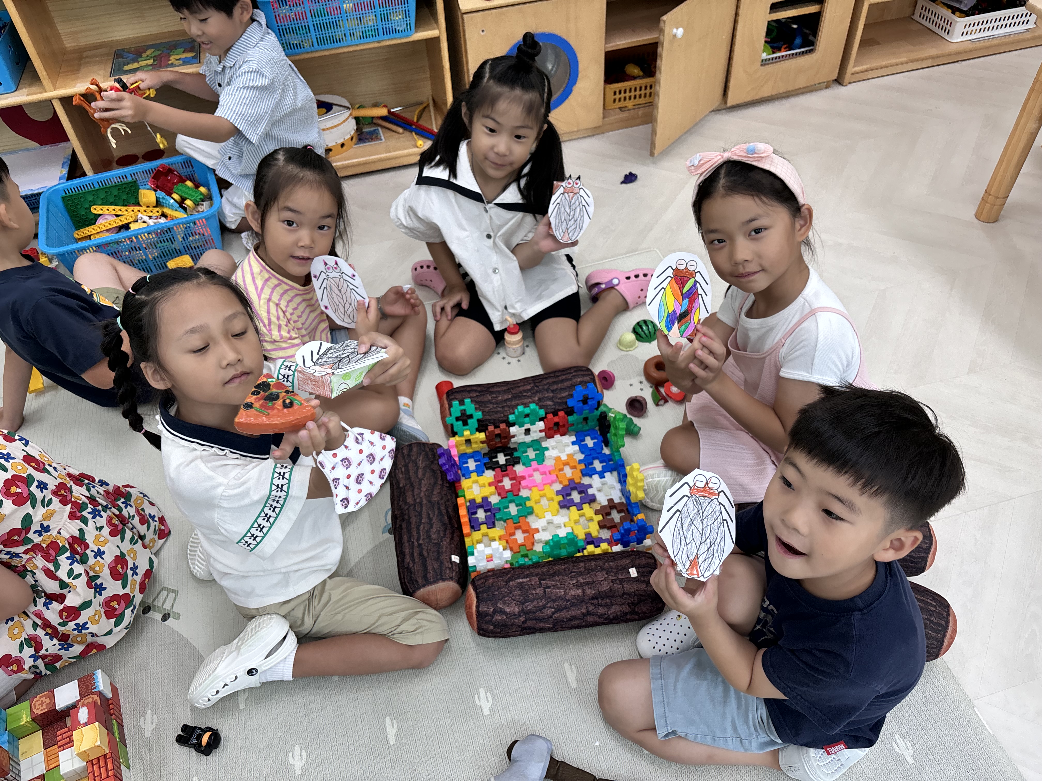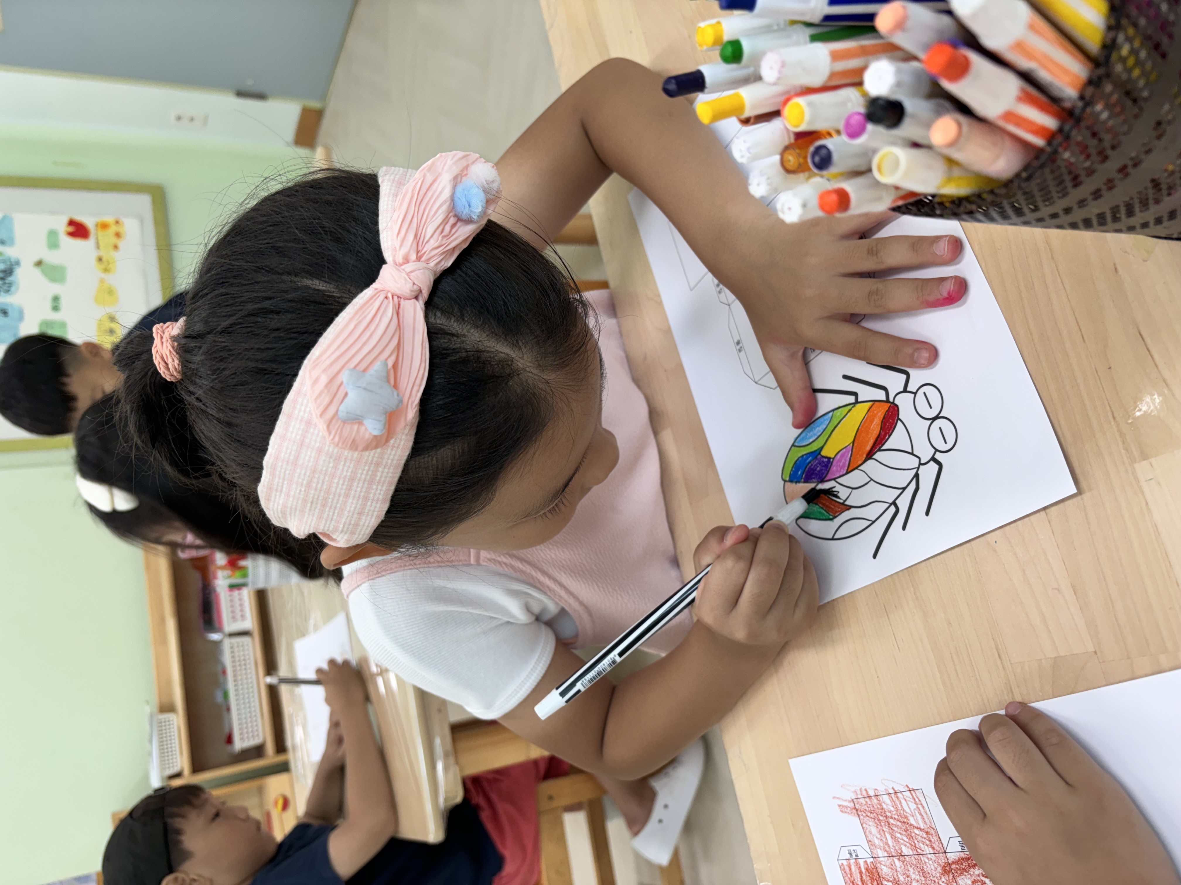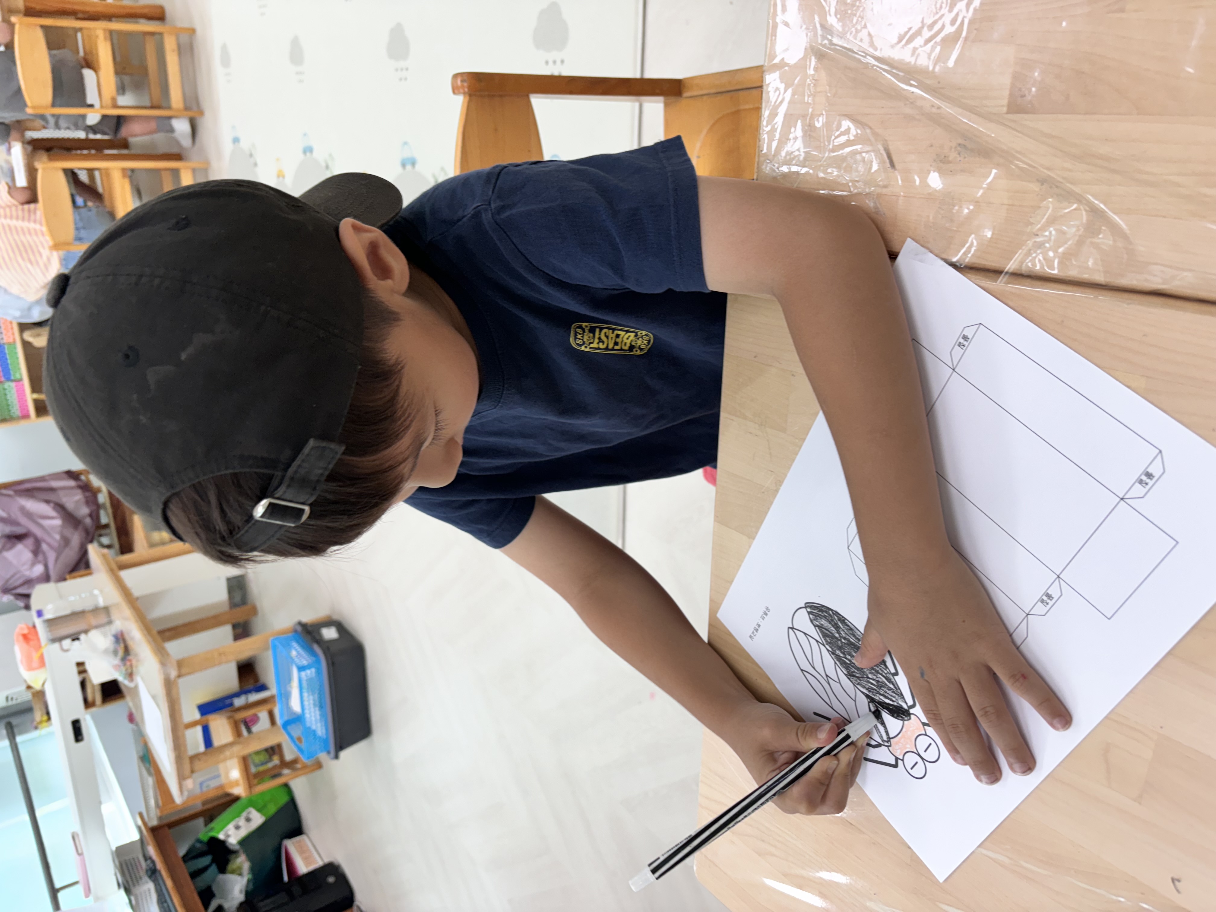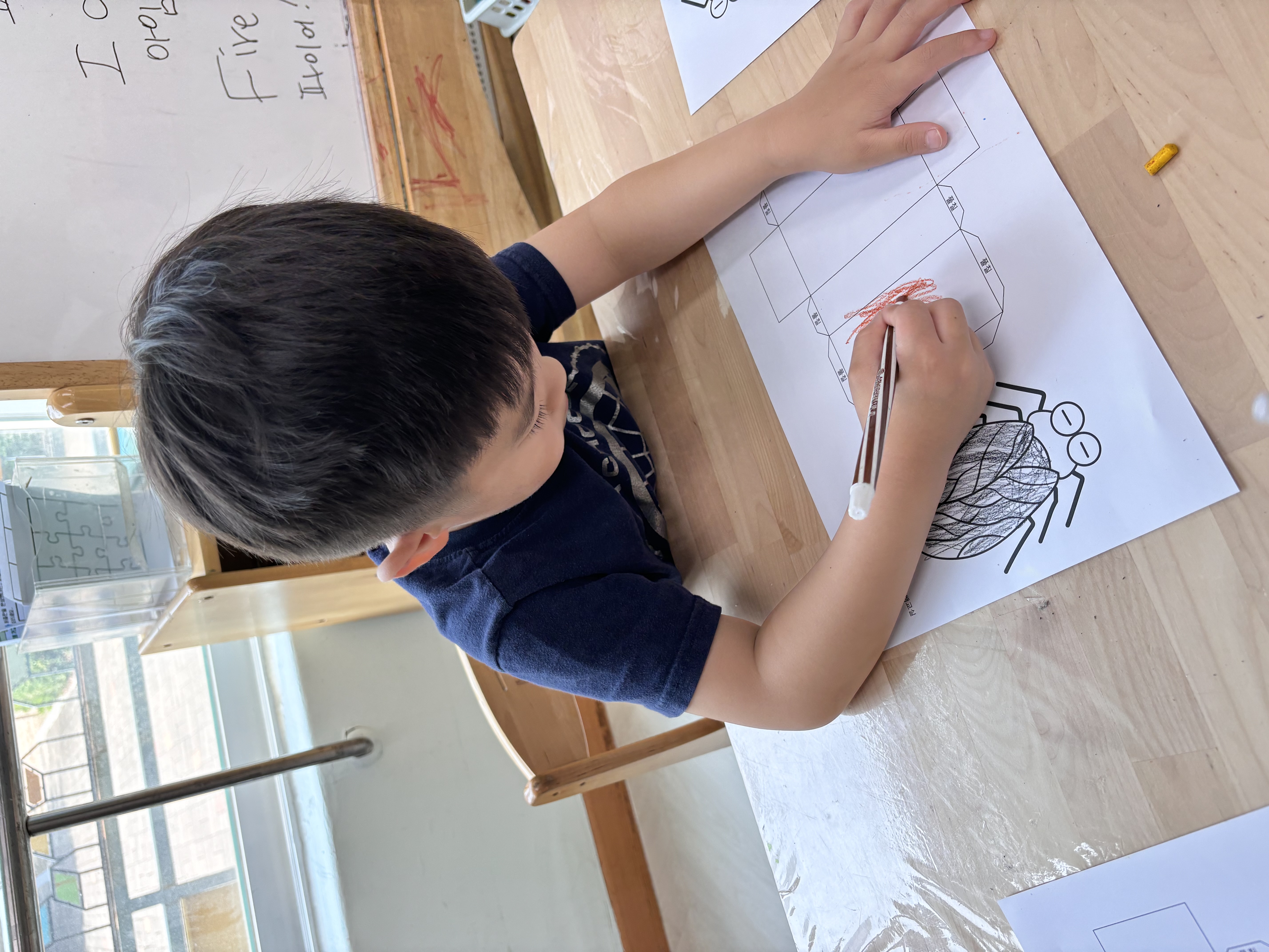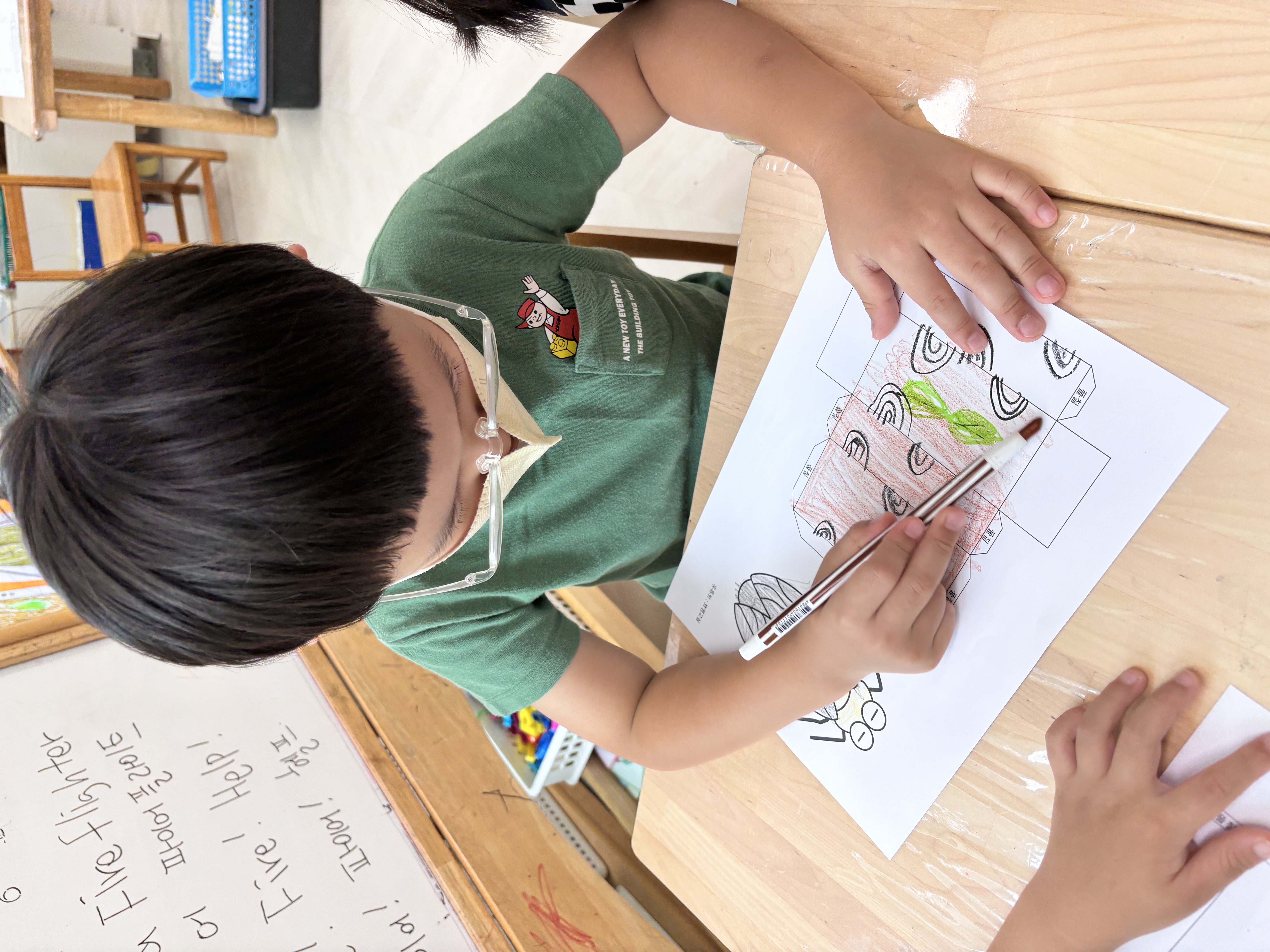 친구들이 매미 마라카스를 만드는 미술 활동을