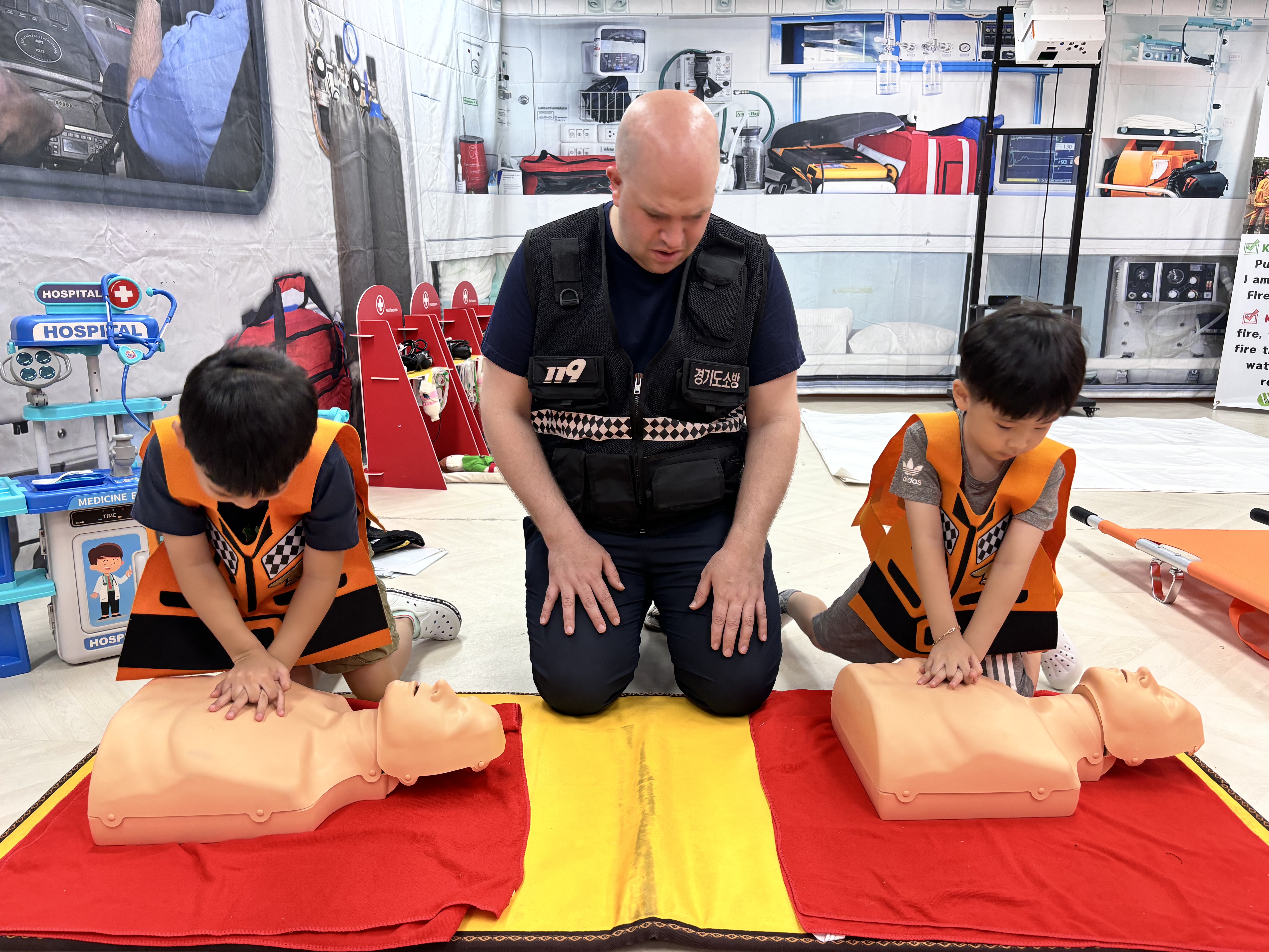 가족들을 구할 수 있다는 말에 열심히 심폐소생술을 하는 하늘이들의 모습이에요.