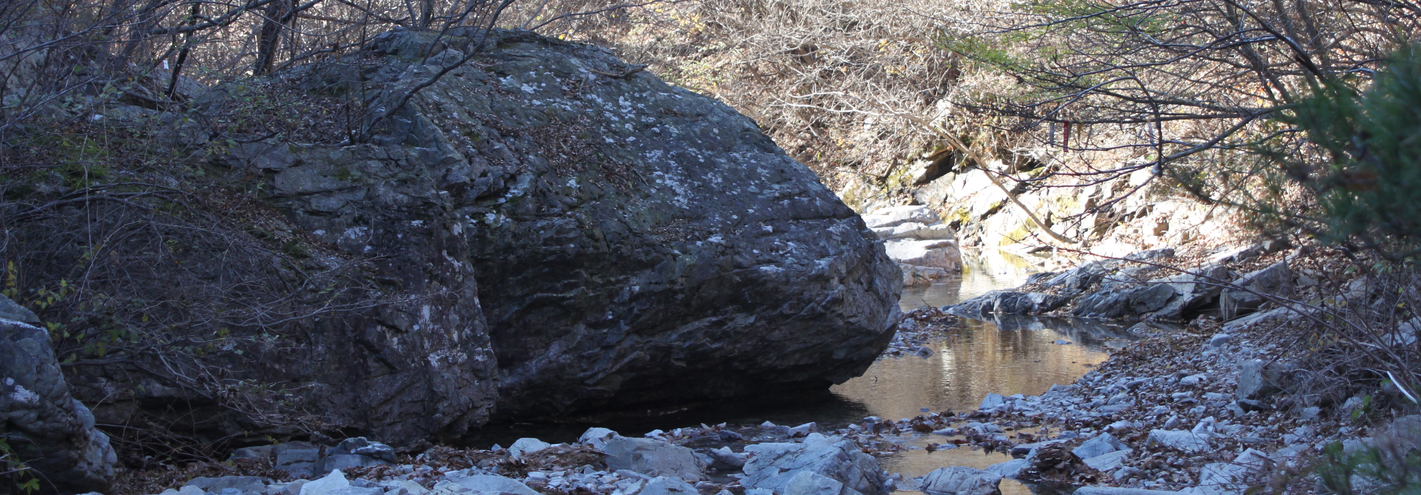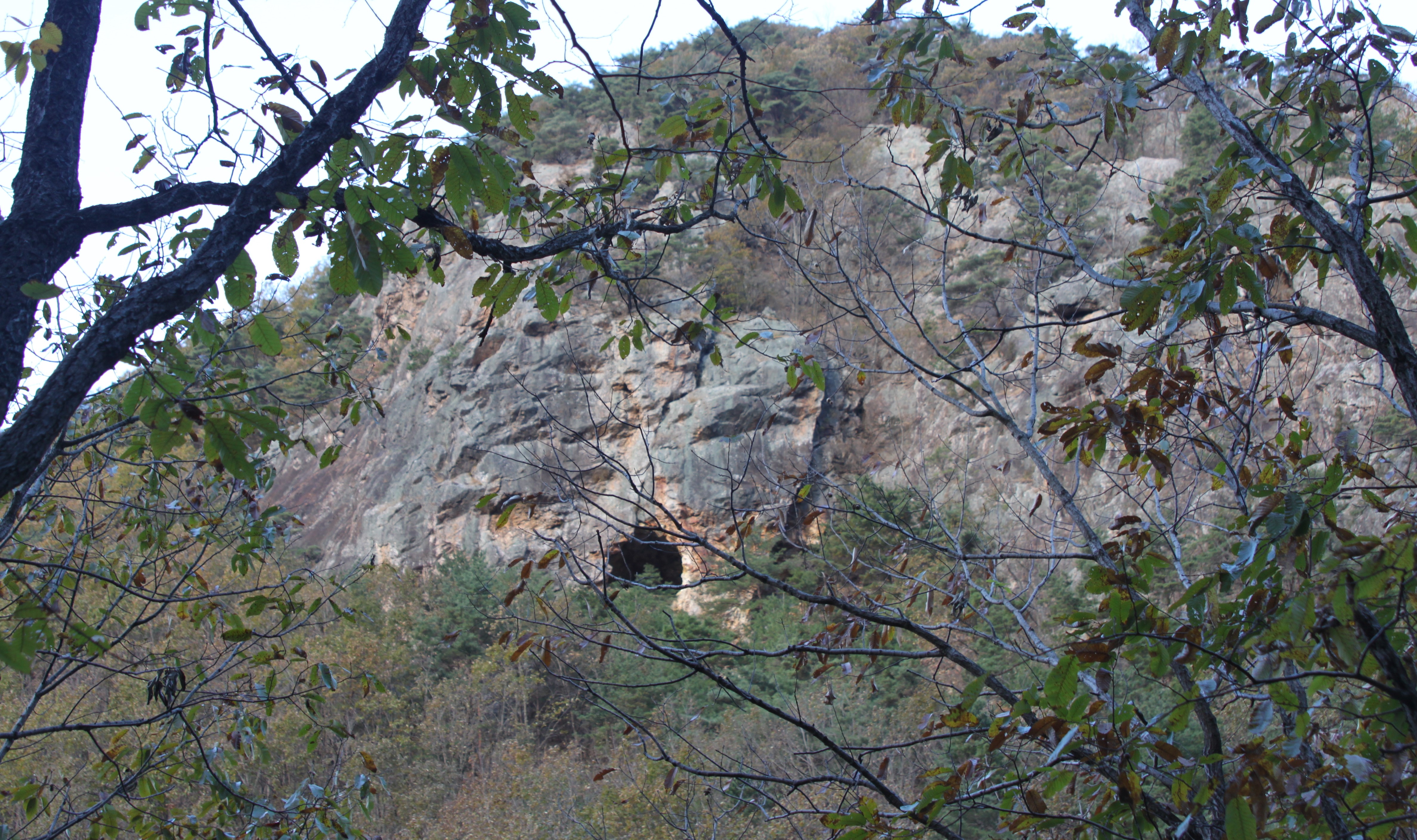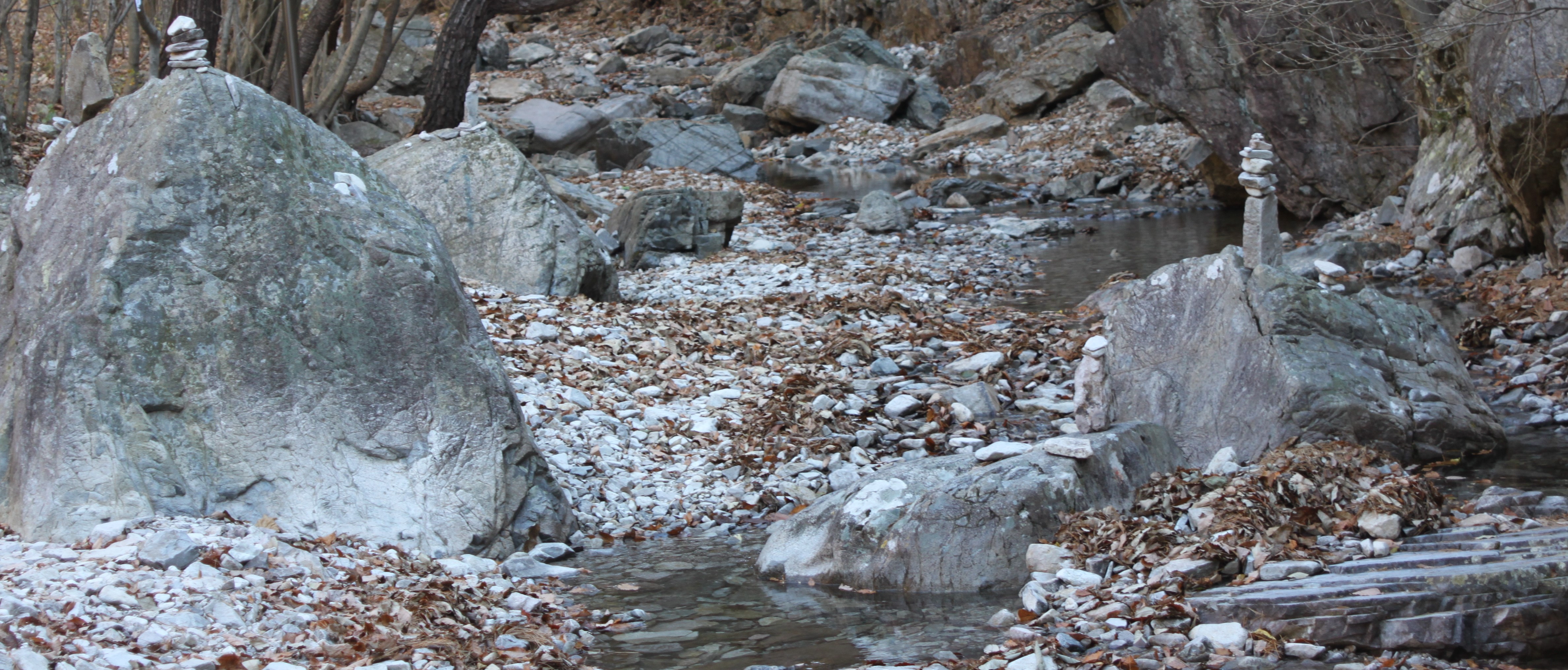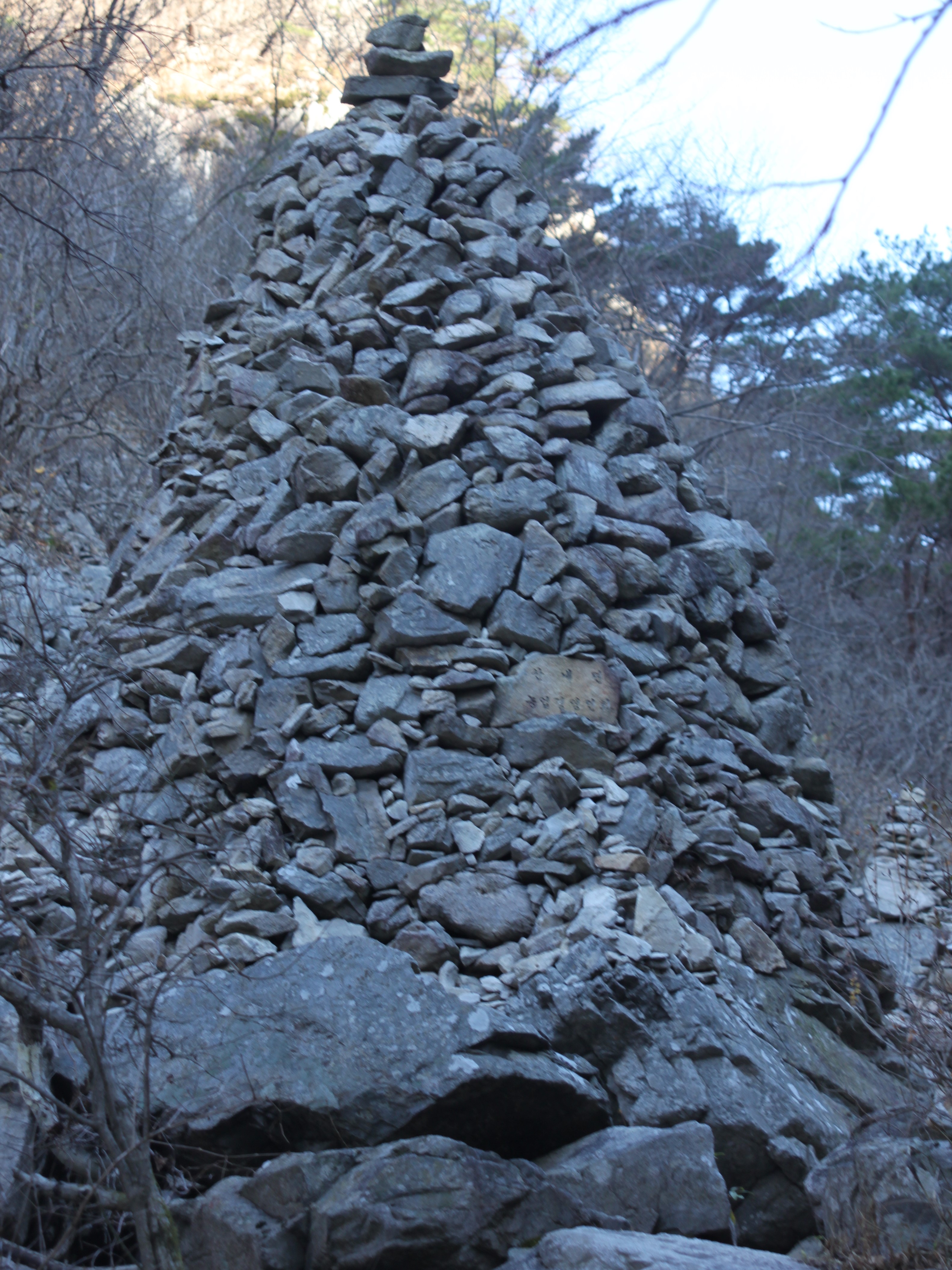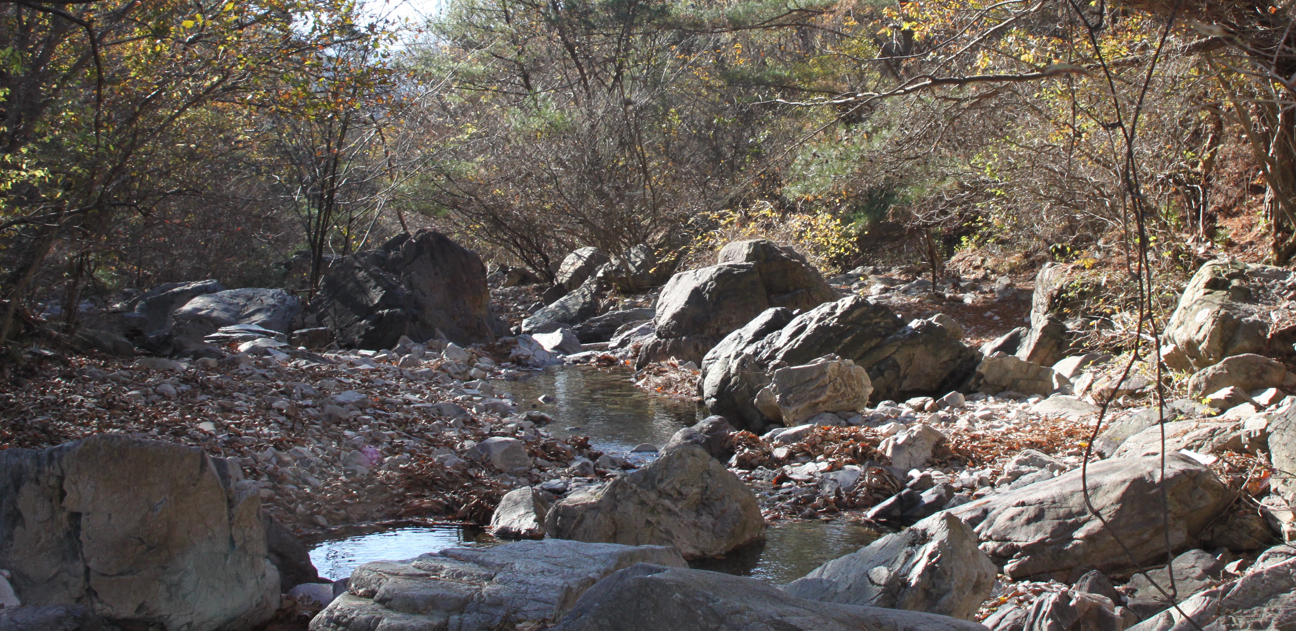 산 골짝에 시냇물 구비치는 작은 개울을 여러번 건너는 힘든 산행이였습니다.