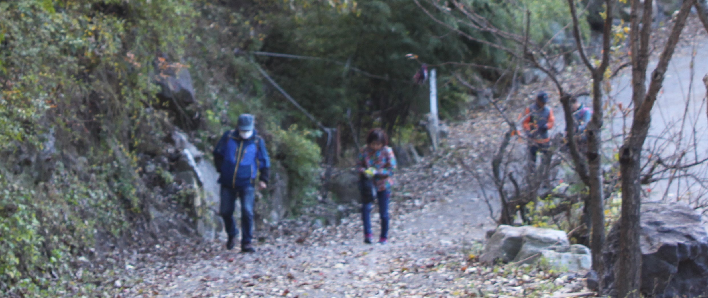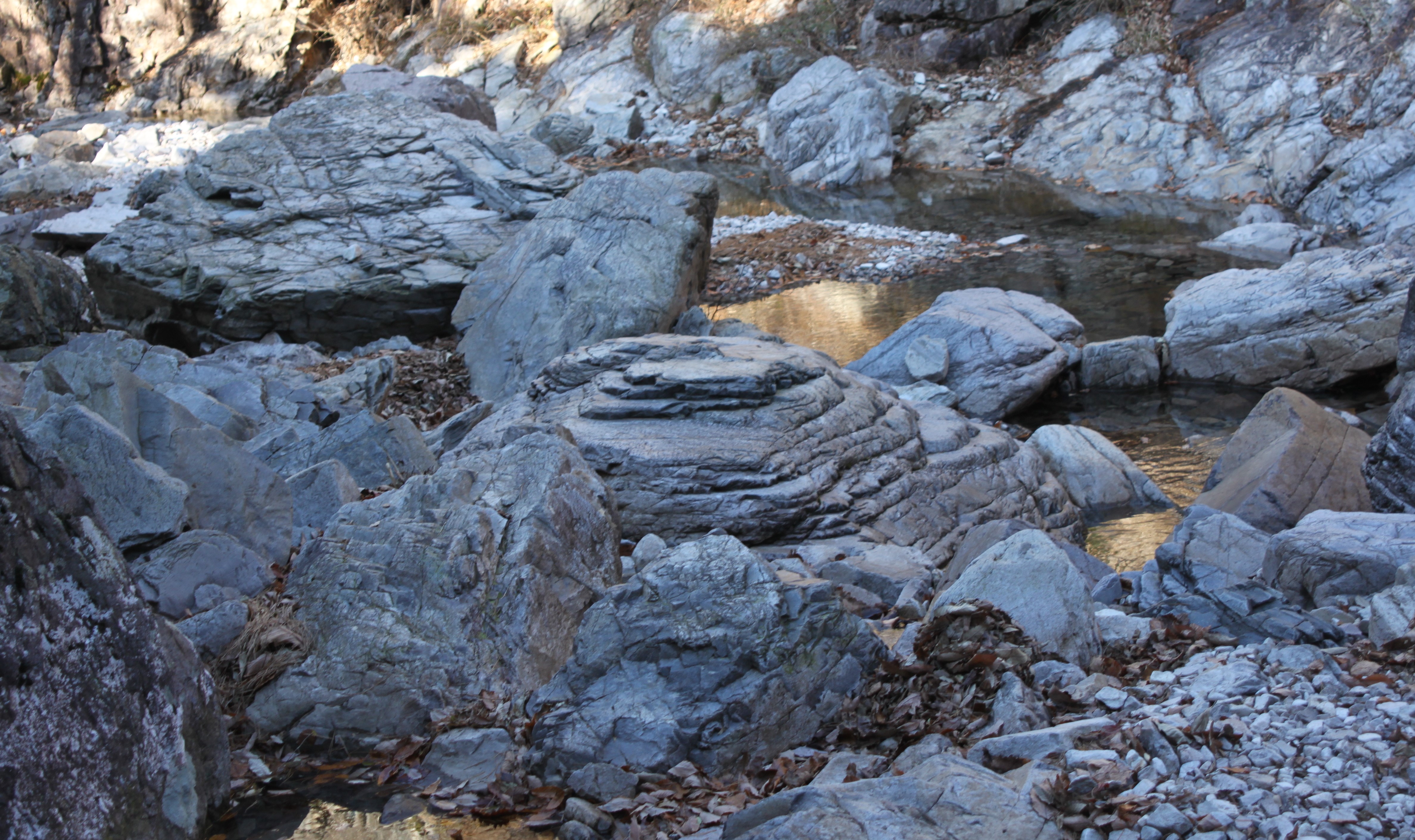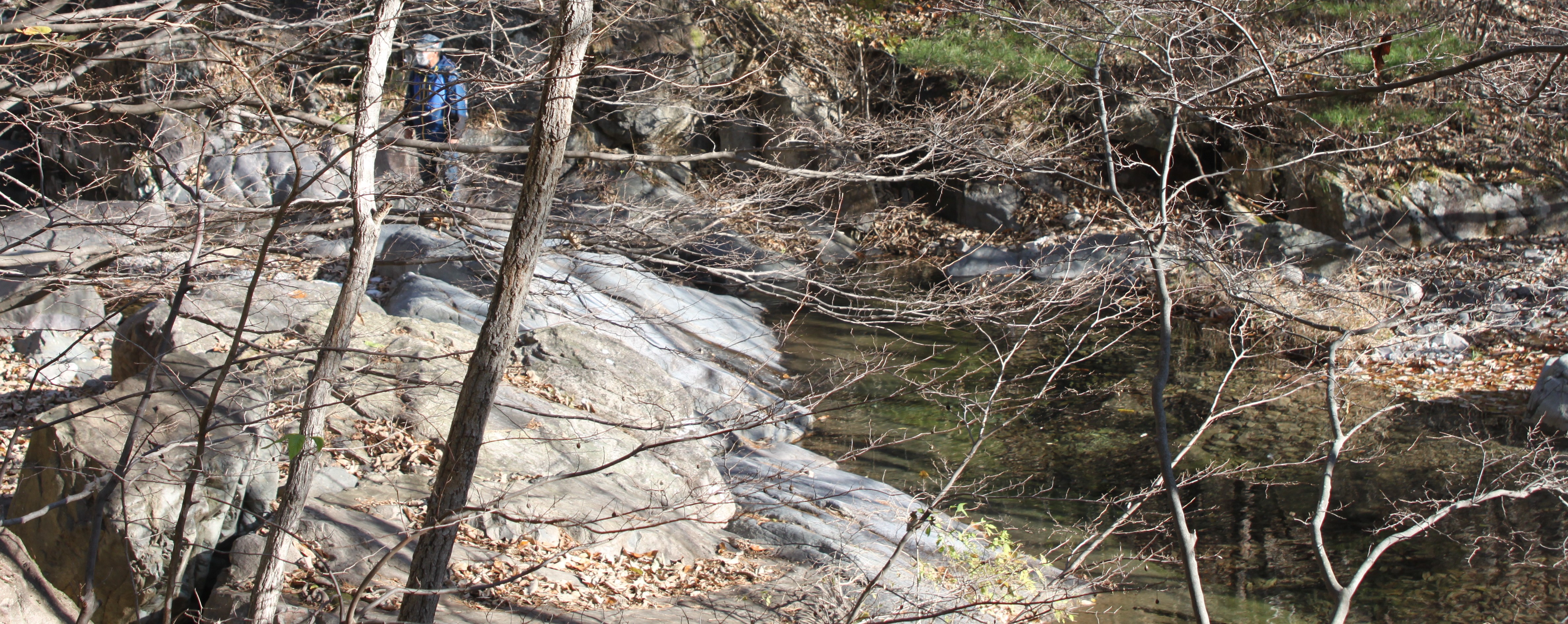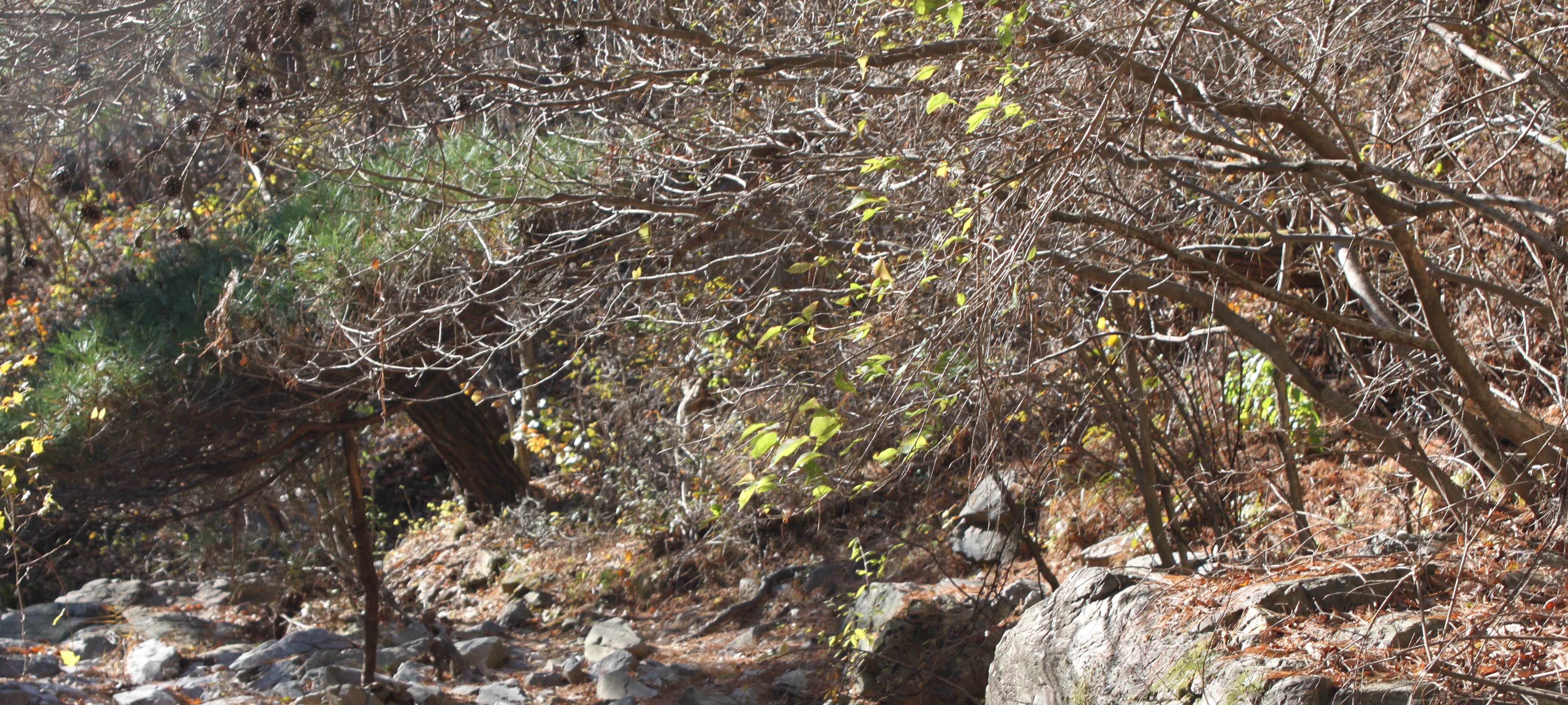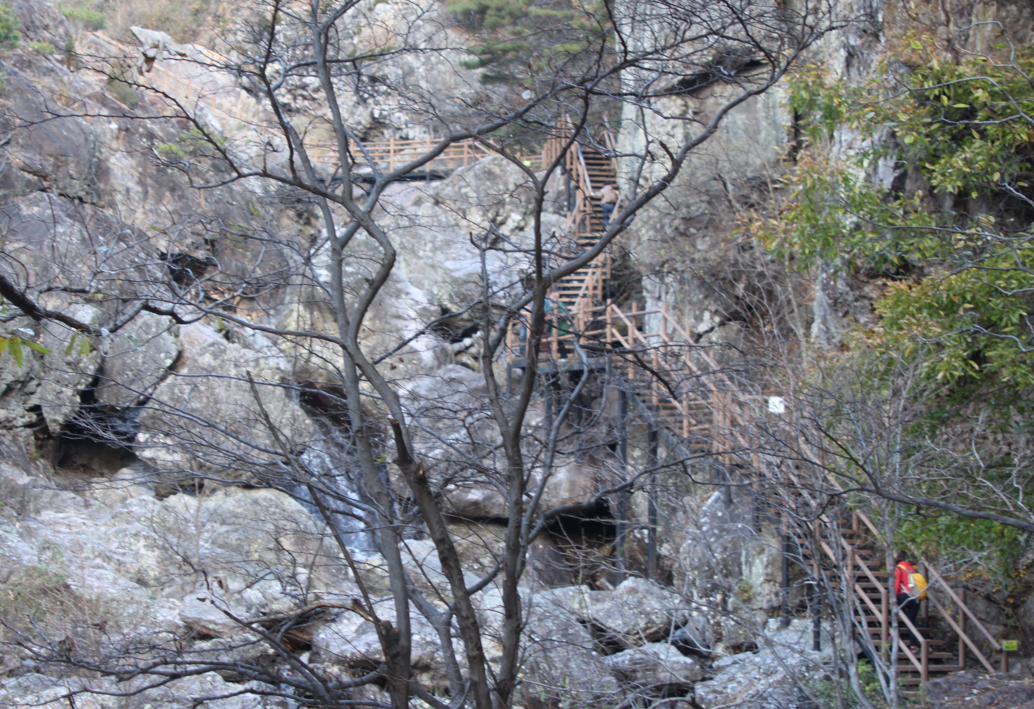 산 골짝에 시냇물 구비치는 작은 개울을 여러번 건너는 힘든 산행이였습니다.