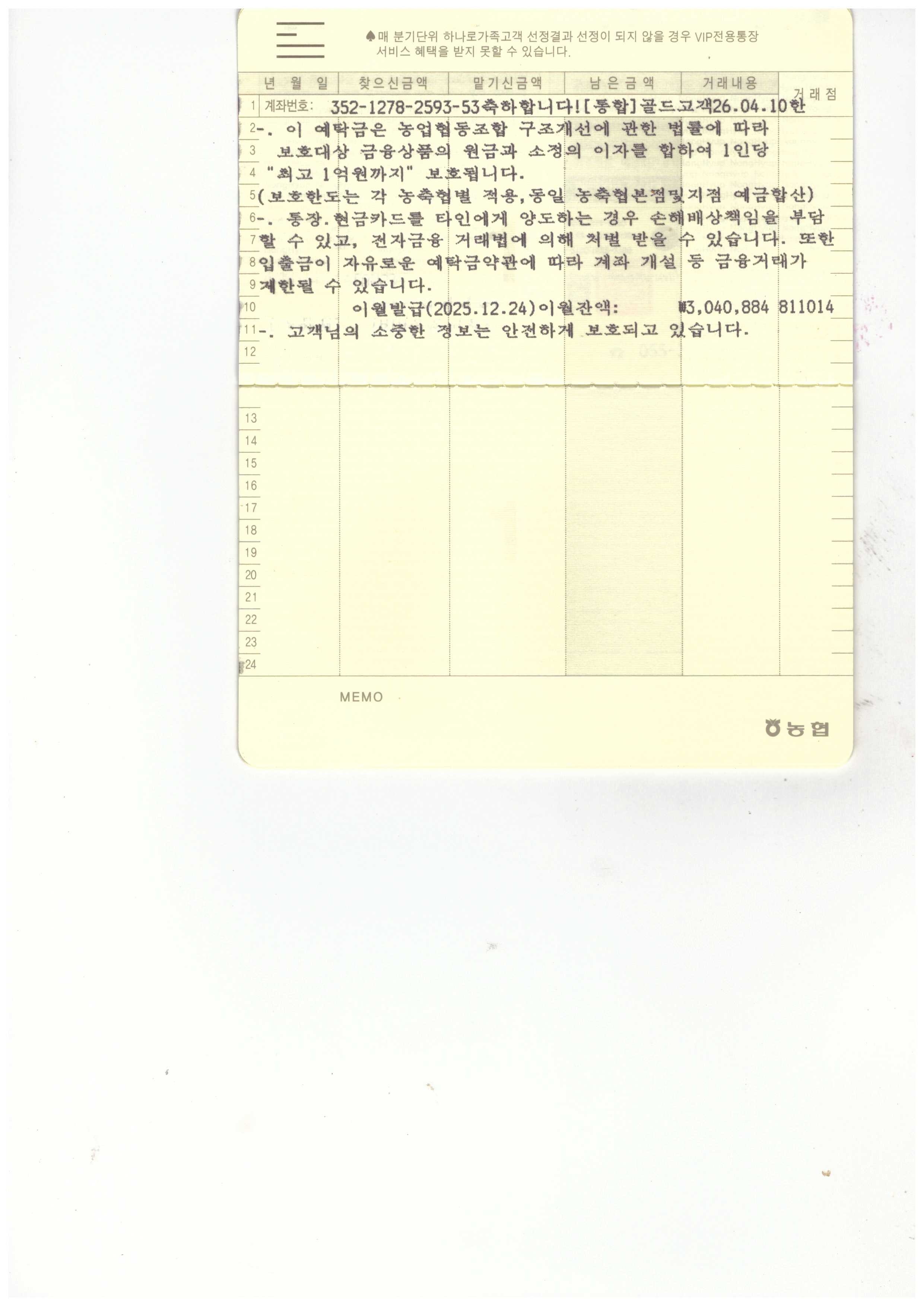 한우리통장 12-24일 현황 Scan_20251225_091812 작성자겨울나그네|작성시간25.12.25|조회수32 목록 댓글 0 글자크기 작게가 글자크기 크게가 다음검색 현재 게시글 추가 기능 열기 북마크 공유하기 신고 센터로 신고 댓글 댓글 0 댓글쓰기 답글쓰기 댓글 리스트