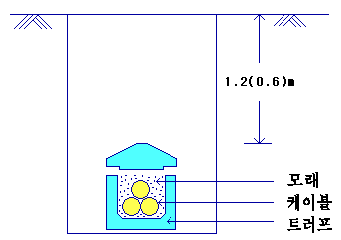 전력케이블을 직접 지중에 매설하는 방식으로, 일반적으로 케이블보호재로서 트러프(trough)를 사용하여 케이블을 보호하며, 모래를 충진한 뒤 뚜껑을 덮고 되메우기 한다. 그러나 이 방식은 케이블 교체시에 도로굴착이 수반되어 현재는 거의 사용되지 않고 있다.