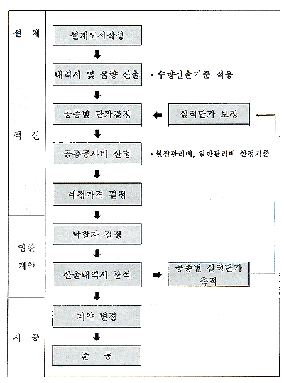 [실적공사비 적산제도 단계별 업무흐름도]