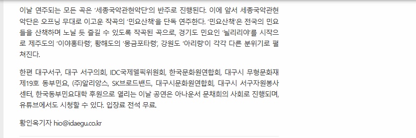 대구서구문화원 국악초청대공연 작성자둥-둥|작성시간23.03.06|조회수36 목록 댓글 0 글자크기 작게가 글자크기 크게가 다음검색 현재 게시글 추가 기능 열기 북마크 공유하기 신고 센터로 신고 댓글 댓글 0 댓글쓰기 답글쓰기 댓글 리스트