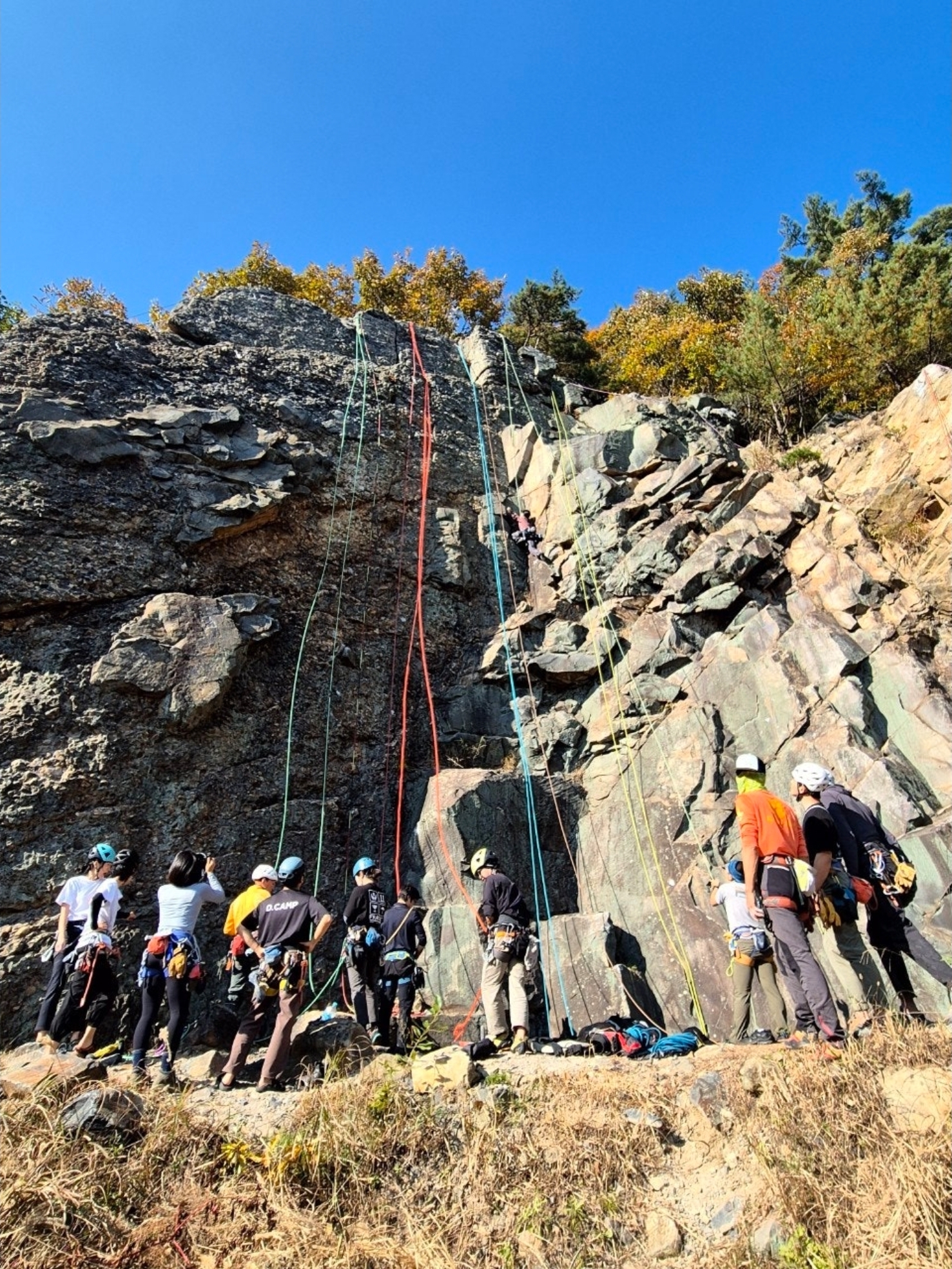 ๋๋ค. ์ด๋ณด ๊ต์ก์๋ค์ ๋ถ๋ด์ ๋์ด๋๋ฆฌ๊ธฐ ์ํด ๋ฑ๋ฐ ๊ต์ก์ ํ์ํ ๋ชจ๋ ์ฅ๋น๋ ๋ณด๋ น์ํ์ธํด๋ฝ์์ ์ค๋นํ๋ฉฐ, UIAA(๊ตญ์ ์ฐ์