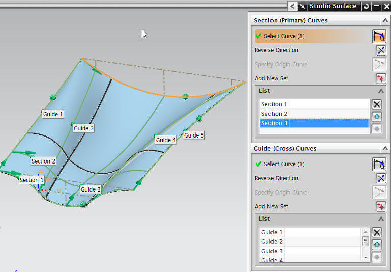 가이드를 어떻게 구성하느냐에 따라 생성되는 면의 모습이 많이 달라진다.