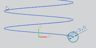 XY평면에 스케치를 생성해 Helix 끝단을 중심으로 하는 3mm 원을 그리고...