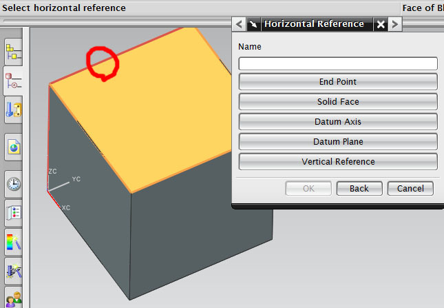 포켓이 파내질 방향(포켓의 장축)과 평행할 엘리먼트를 지정해야하는데 면의 모서리를 이용할 수 있다면 걍 마우스로 클릭.