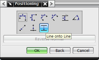 또한 포켓의 각 변을 어떤 모서리에 붙일 수도 있는데 이럴 때는 Positioning에서 Line onto Line을 이용하면 된다.