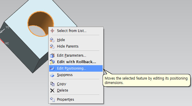 특징형상 위치값 변경은 생성 시와는 달리 따로 해야함.