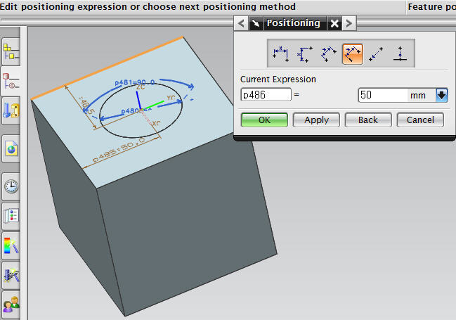 이제 구멍의 위치만 잡아주면 됨. OK를 누르면 Positioning Step으로 넘어감.
