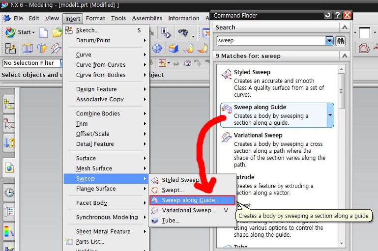 NX를 시작하기 전에 메뉴에 되도록 모든 명령이 표시되도록 설정해놓아야함.