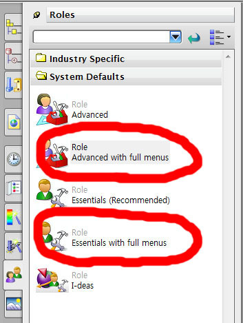 왼쪽 패널의 Roles에서 Advanced 또는 Essential Role의 Full Menu 항목을 선택하면 됨.