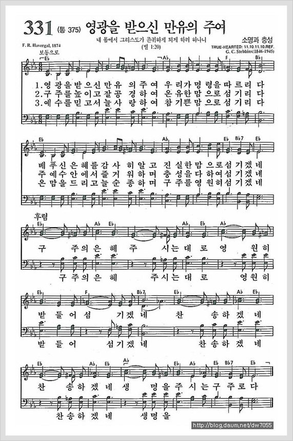 영광을 받으신 만유의 주여[찬양*악보*가사] - 새찬송가 331장, 통일찬송가 375장
