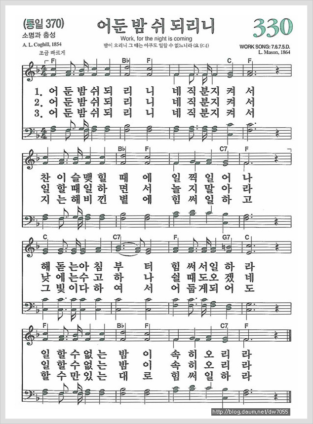 어둔 밤 쉬되리니[찬양*악보*가사] - 새찬송가 330장, 통일찬송가 370장