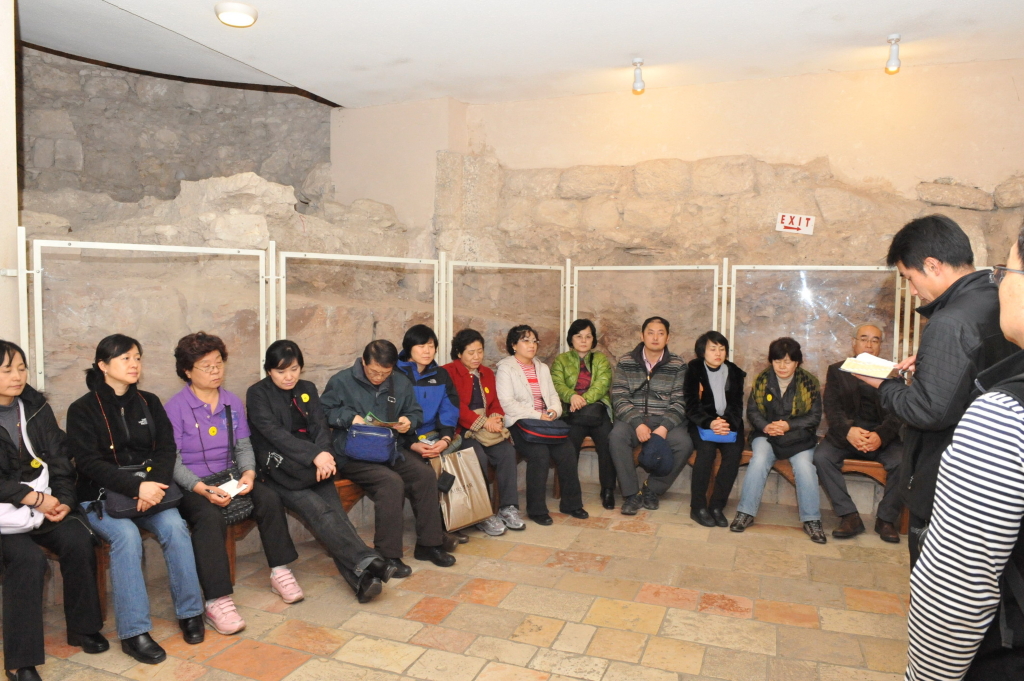혼인잔치가 행해졌던 이곳은 마치 우리나라의 옛 토담집이 연상되듯 정감이 서려 있었다. 항아리가 놓여 있는 곳은 마치 재래식 부엌과도 비슷한 느낌이 들었다. 여인들이 자주 드나드는 장소가 아니었을까 라는 생각과 더불어 나도 여인측에 속하기 때문에 이런 감정이 들었을 것 같았다. 오늘날 ‘가나’라고 여겨지는 곳은 키르벳 가나(Khirbet Qana)와 카프르 칸나(Kafr Kanna) 두 곳이다. ‘페허 가나’라는 뜻을 지닌 키르벳 가나는 나자렛에서 북쪽으로약 14Km 떨어진 곳인데 지도상에서는 이곳이 ‘가나’라고 되어 있지만 기념성당이나 유적이 없는 곳이다. 나자렛과 티베리아를 잇는 지방도로변에 위치한 ‘카프르 칸나’는 나자렛에서 북동쪽으로 약 8Km 떨어진 곳이다. 그리스도 신자들은 16세기 경부터 이곳을 요한복음에만 언급 되어 있는‘갈릴래아 가나’라고 여기기 시작했다. 이곳은 1641년에 프란치스꼬 수도회에서 시선을 돌리게 되었는데, 이미 1566년에 희랍 정교회 소속 경당이 세워져 있었다. 그후 1879년에 이르러 혼인잔치가 행해졌던 곳이라고 전해진 부지를 매입하였고, 1883년에 기념성당을 건립하여 오늘날까지 잘 보존되어 있다.지하 성당에는 제단 옆에 큰 물항아리가 놓여 있다. 물을 포도주로 변화시킨 예수님의 기적을 기념코자후대에 만들어 놓은 것이라고 한다. 물항아리가 놓여진 곳에는 라틴어로“여기에 여섯 개의 물항아리가 놓여 있었다.(Hic erant sexhydriae positae)” 라고 적혀 있다. 갈릴래아 지방 가나는 혼인잔치에서 예수님이 물을 포도주로 변화시킨 기적(요한 2,1-12)과 고관의 아들을 고치신 기적(요한 4,43-54)이 일어났던 곳이다. 특히 포도주의 기적은 요한복음에 나오는 첫 번째 기적이다.“유다인들에게는 정결예식을 행하는 관습이 있었는데 거기에는 그 예식에 쓰이는 두세 동이들이 돌항아리 여섯 개가 놓여 있었다”.(요한 2,6)‘동이’라고 번역된 그리스 원문은 ‘메트레테스’, 약 두 말을 표시하는 양의 단위라고 한다. 예수님이 물을 포도주로 만드신 양은 열두 말이 넘는 많은 양이었고 마신 사람들은 맛이 좋았다고 표현했다. 이스라엘에서의 혼인잔치는 일반적으로 일주일 동안 계속 된다고 한다. 일주일이나 잔치가 계속되는 동안 잔치집에 온 사람들이 먹고 마시는 음식과 술의 양은 만만치 않았을 것 같다. 잔치집 주인은 얼마나 분주했을까? 성모님과 예수님, 그리고 제자들은 아마도 며칠이 지난 후에 방문을 하였던가 보다. 아니면 예수님과 제자들이 주량(?)이 좀 과한 편이었을지도...그러나 이 사건은 포도주는 구원자 메시아의 새로운 시대가 도래한 것을 나타낸 것이라고 알아야 할 것이다.