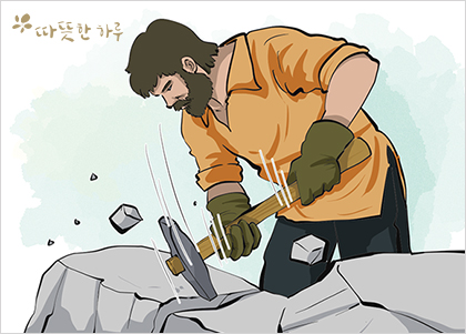 석공은 큰 돌을 깨기 위해 똑같은 자리를