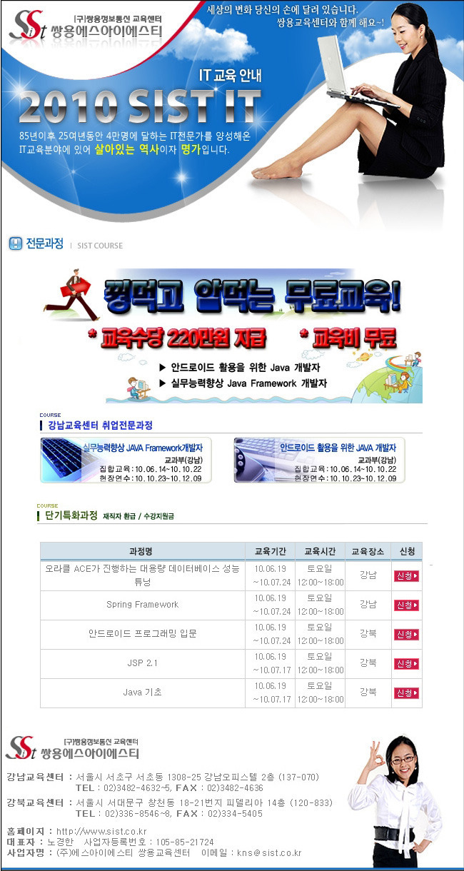 꿩먹고 알먹는 무료교육! 자바프로그램 무료교육 ★ 작성자이럴수가|작성시간10.06.24|조회수17 목록 댓글 0 글자크기 작게가 글자크기 크게가 꿩먹고 알먹는 무료교육 OH 놀라워라 ♬ 자바프로그래머 교육비 무료!! 교육수당 220만원까지 지급 좋은기회 놓치지 마세요 ^^ 다음검색 현재 게시글 추가 기능 열기 북마크 공유하기 신고 센터로 신고 댓글 댓글 0 댓글쓰기 답글쓰기 댓글 리스트