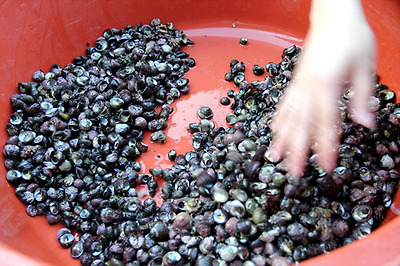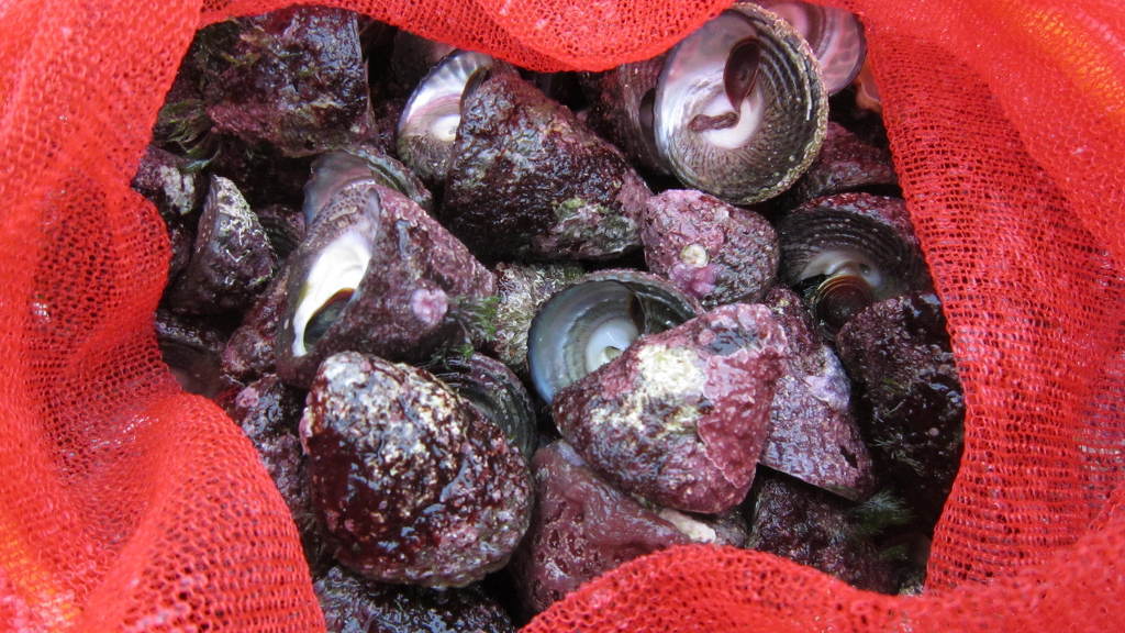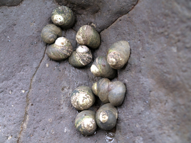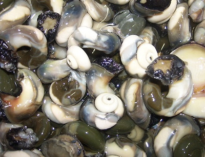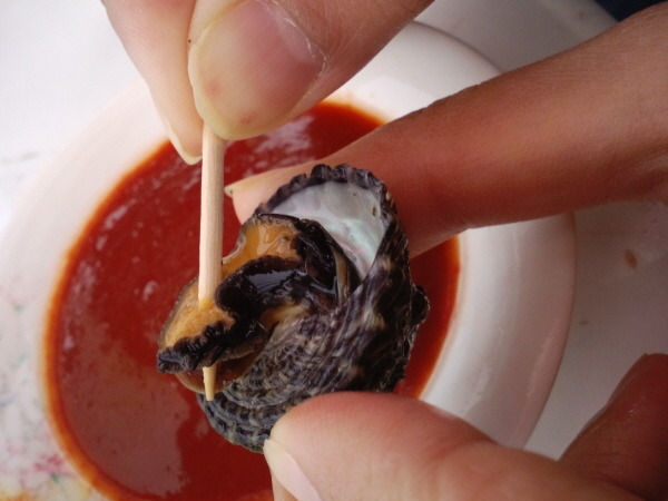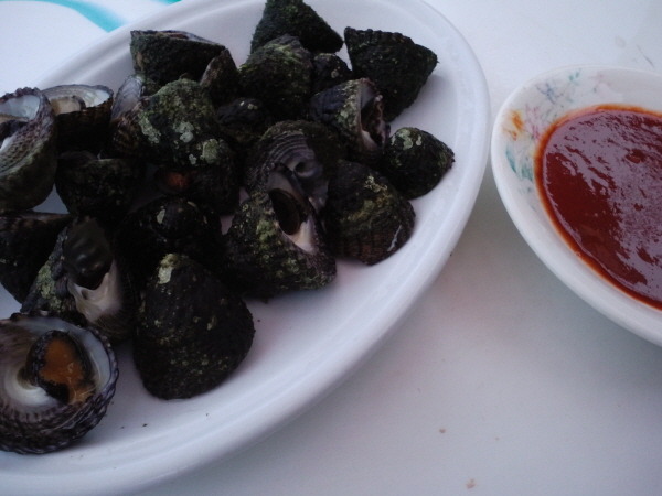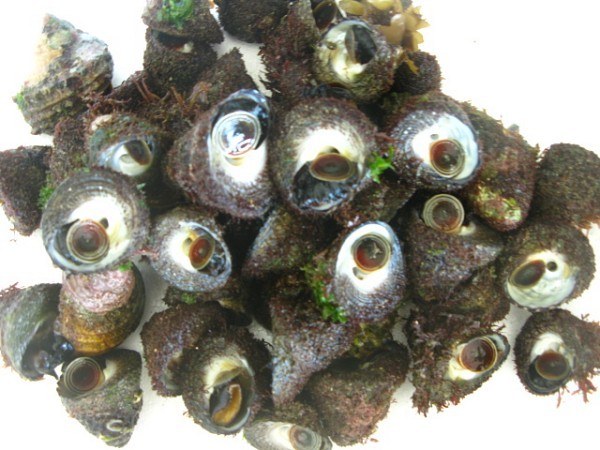 이놈이 보말입니다. 보말이 뭔지는 다들 아시죠? 제주도 지역에선 고둥류를 통틀어 보말이라고 부른답니다. 제주바다 돌 사이를 뒤지면 지천으로 깔려 있죠. 다만 횟집에서 파는 것과 같이 통통하고 큰 놈은 인근에선 잡기 힘들어요. 저희처럼 하도 채취해대니 씨가 말라서 그렇겠죠. 어쨌든 삶아도 먹고 조림으로도 먹고, 라면에 넣어서 먹어도 아주 맛난 놈입니다.