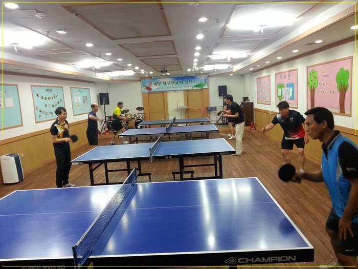 창단식이 끝나고 다과회를 가진 후 실내에 4대의 탁구대(레슨용 탁구대는 별도로 추가설치 예정)를 설치하고 안양중학교에 재학 중인 선수와 회원 간에 시범경기가 있었으며, 이어서 참석한 성도들 간에 자유롭게 게임을 갖는 기회를 가졌다.