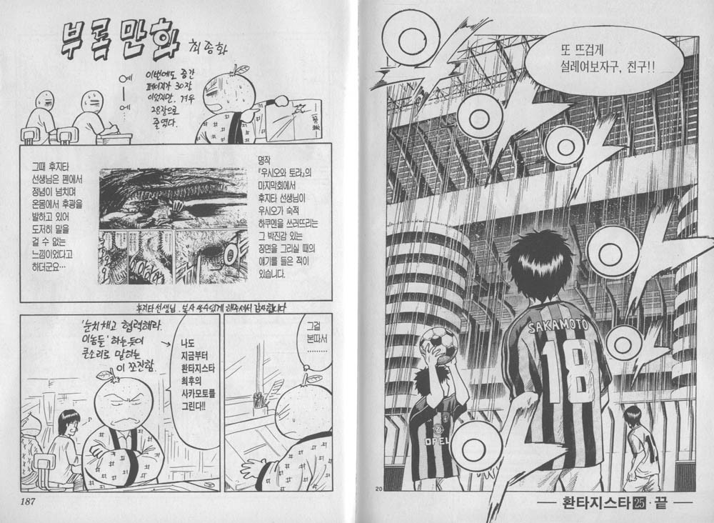 [축구만화책 추천] 환타지스타 , 1~25권 완결입니다. - 쿠사바 미치테루. 작성자재미난만화|작성시간18.04.26|조회수6,538 목록 댓글 1 글자크기 작게가 글자크기 크게가 축구 만화책 추천 / 쿠사바 미치테루 작가의 '환티지스타' 입니다.1~25권까지 완결입니다.아직 못보셨던 분은 재미있게 보세요~ ^ ^ 다음검색 현재 게시글 추가 기능 열기 북마크 공유하기 신고 센터로 신고 댓글 댓글 1 댓글쓰기 답글쓰기 댓글 리스트 작성자재미난만화 작성자 본인 여부 작성자 | 작성시간 18.04.26 위의 만화책은 옆에 만화자료실에 가시면 보실 수 있습니다.검색에서 "환타지스타"로 조회하시면 나옵니다.아직 못보신 분은 재미있게 보고 가세요~ ^ ^ 댓글 전체보기