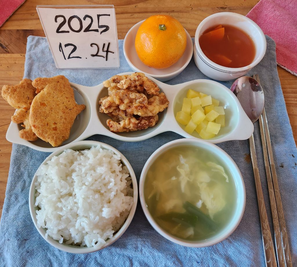 점심- 채소짜장밥, 유정란파국, 탕수육(소스), 단무지,
