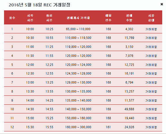 예상 물량은 150,000rec 전후였었는데 거래시장에 나온 입찰수량은 185,995rec입니다.
