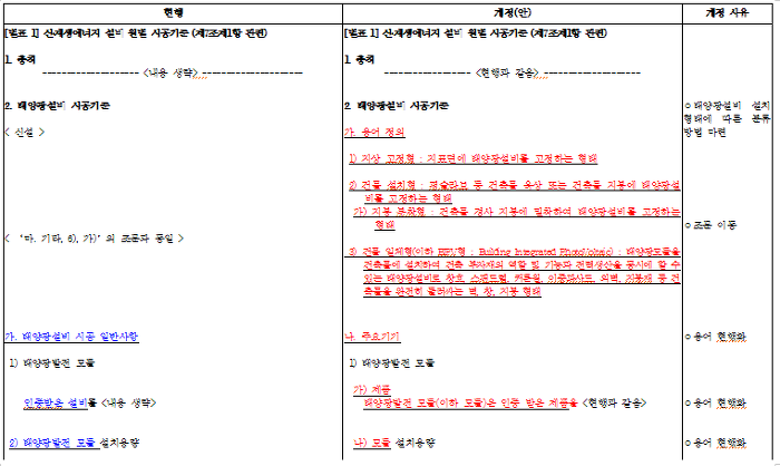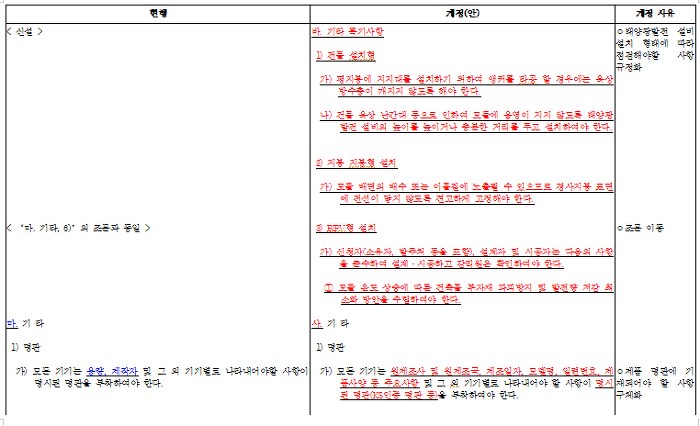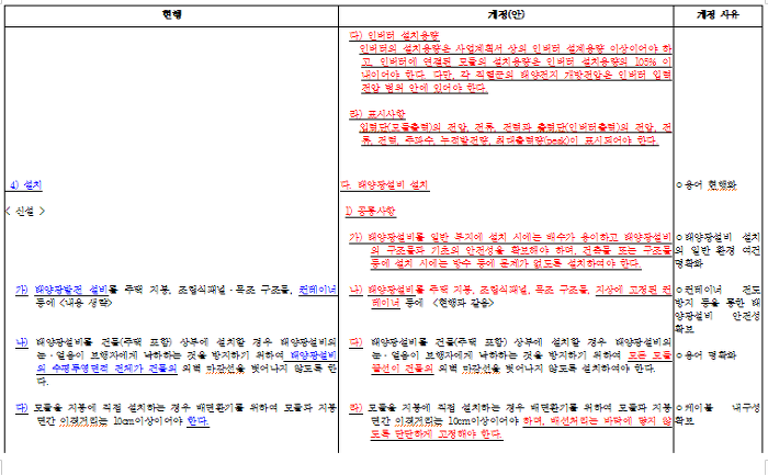 태양광설비 시공기준 제정 및 개정