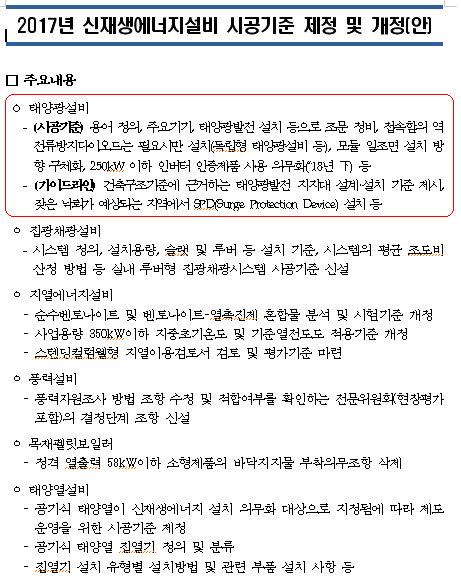 첨부파일 첨부. 2017년 신재생에너지설비 시공기준 제정 및 개정(안).hwp