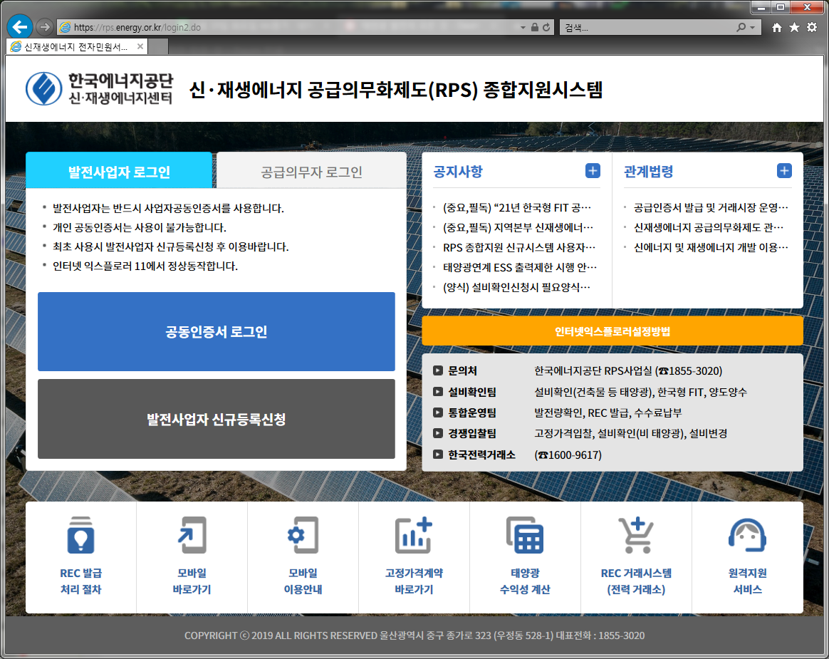 깔끔하고 이쁜 것 같습니다. 이름도 신.재생에너지 공급의화제도(RPS) 종합지원시스템 ~~~