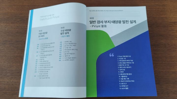 태양광 설계업체와 시공사들이 설계에 많은 시간을 투입하면서도 제대로 된 설계를 못하거나, 자기가 설계한 발전소의 발전량 예측을 못하는 것을 보고 책을 내기로 결심하셨다고 합니다.